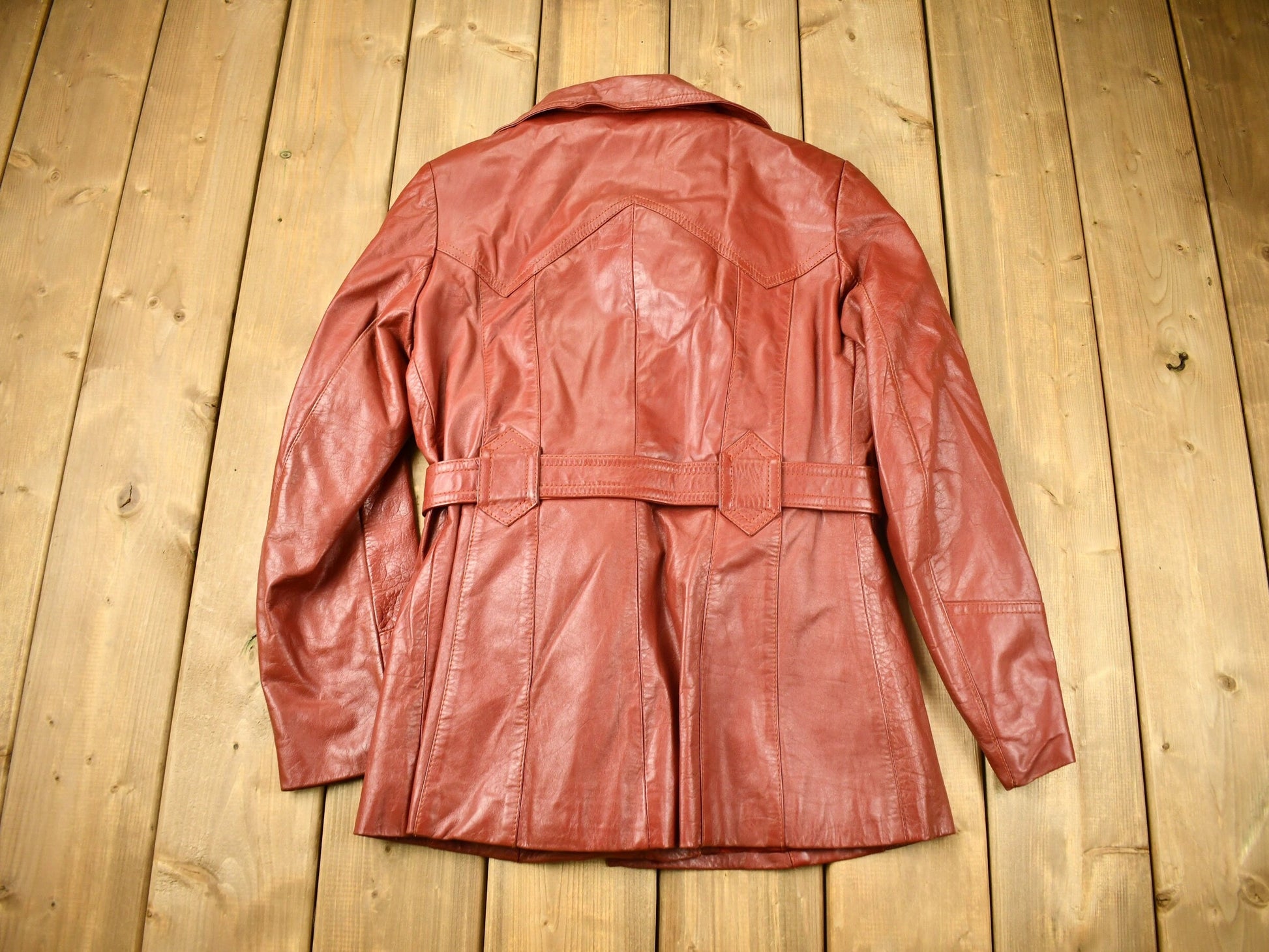 $175.00 USDVintage 1970s Full Length Brown Leather Trench Coat