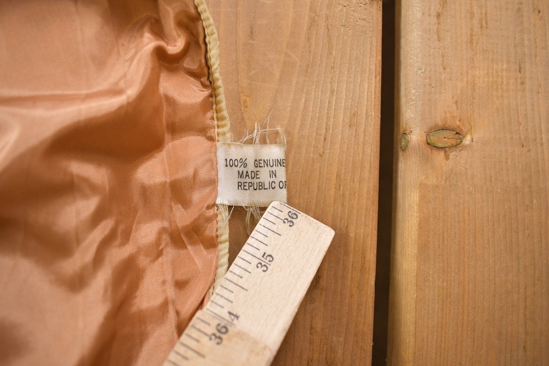 $265.00 USDVintage 1970s Genuine Leather Faux Fur Lined Beige Coat