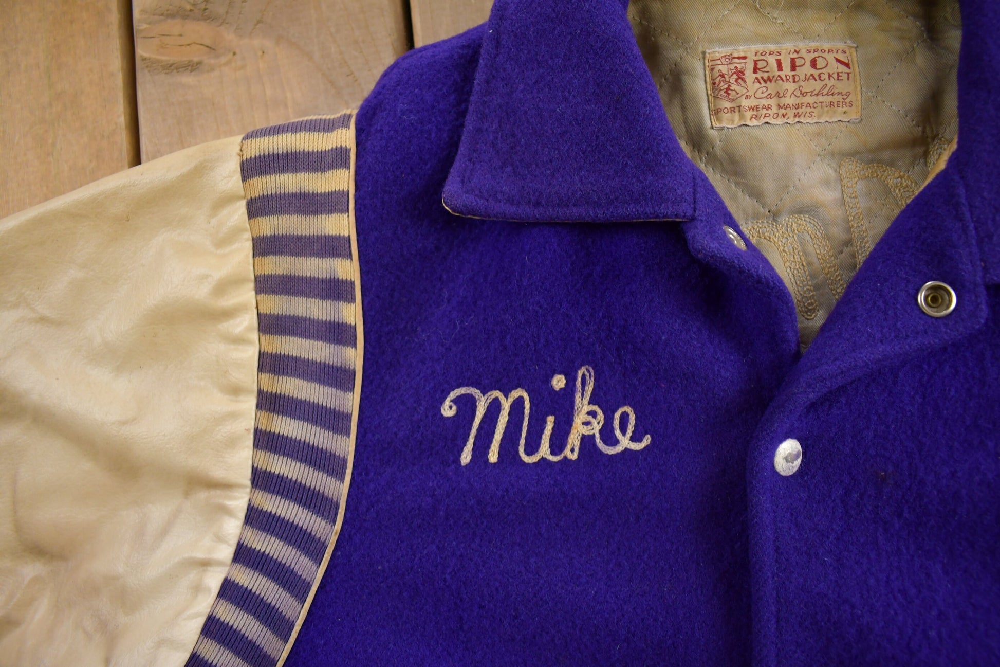 Vintage 1950s Thronridge Highschool Leather & Wool Embroidered Varsity Jacket Made In USA