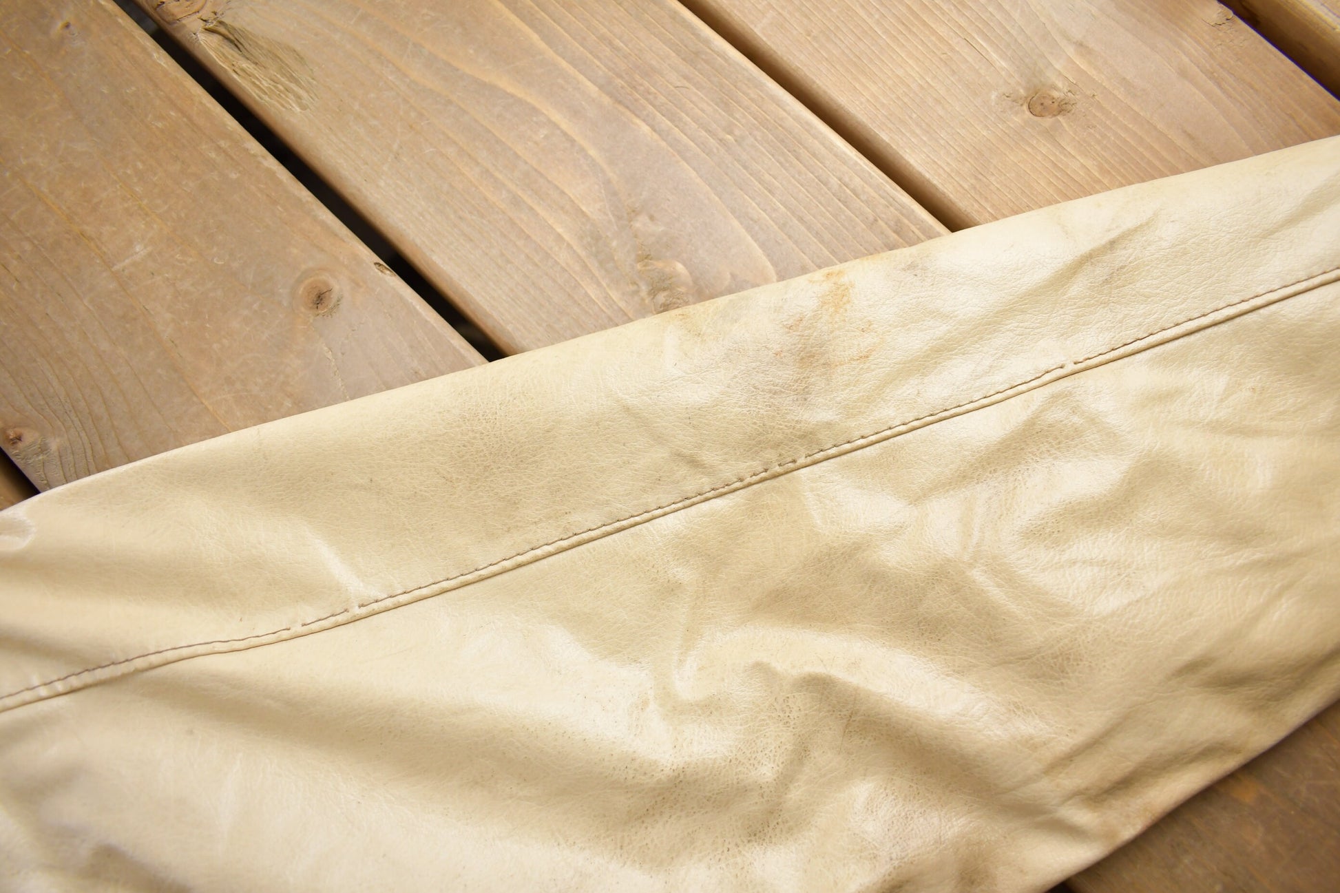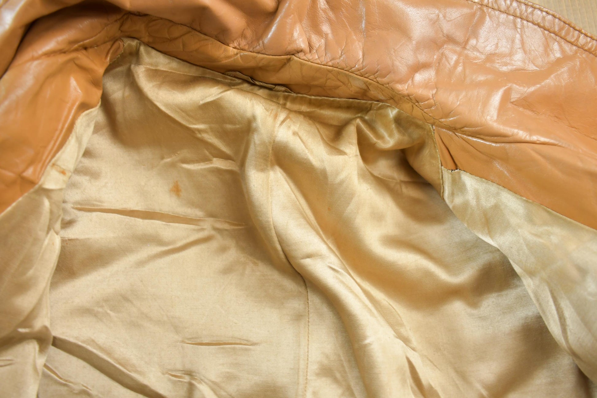Vintage 1970s Genuine Leather Faux Fur Lined Beige Coat