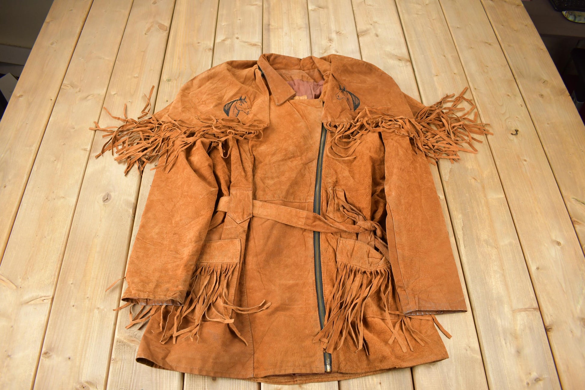 $360.00 USDVintage 1970s Embroidered Horse Fringe Leather Jacket