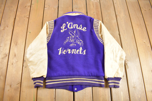 Vintage 1975 L'Anes Hornets Chain Stitched Leather Varsity Jacket