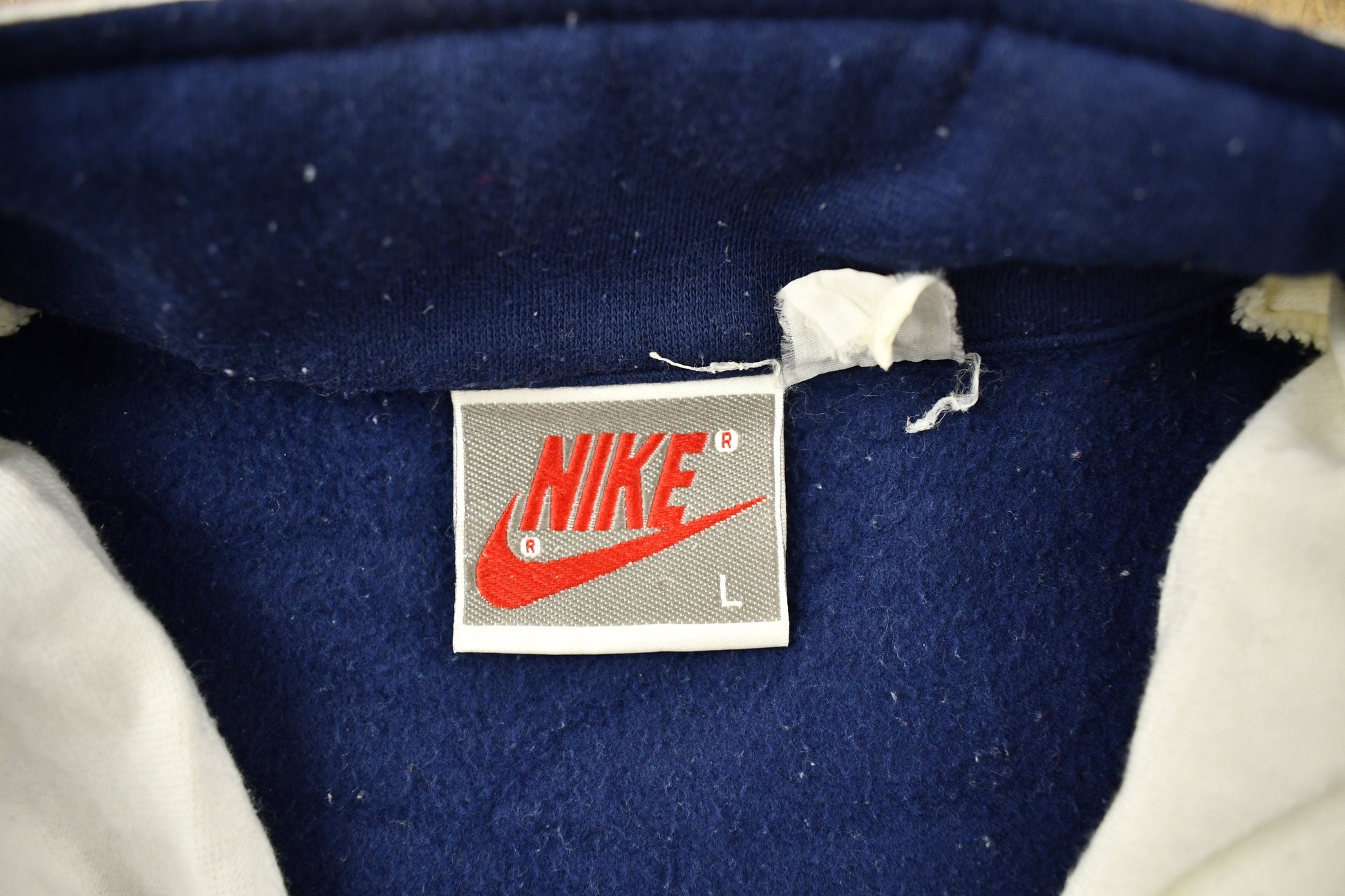 $80.00 USDVintage 1990s Nike Grey Tag Navy Swoosh Crewneck Sweatshirt