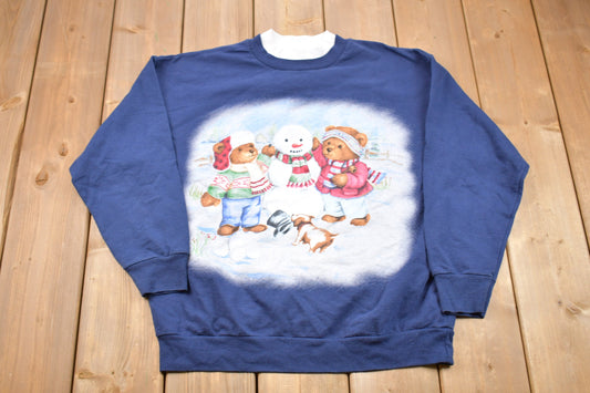 Vintage 1990s Nutcracker Cute Bear Snowman Christmas Sweater , 90s Holiday Crewneck , Winter Wear , Festive Graphic Print -