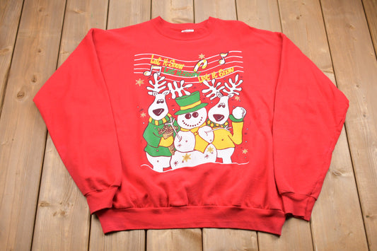 Vintage 1990s "Let It Snow" Cute Animal Christmas Sweatshirt , 90s Holiday Crewneck , Winter Wear , Festive Graphic , Snowman Reindeer Print -