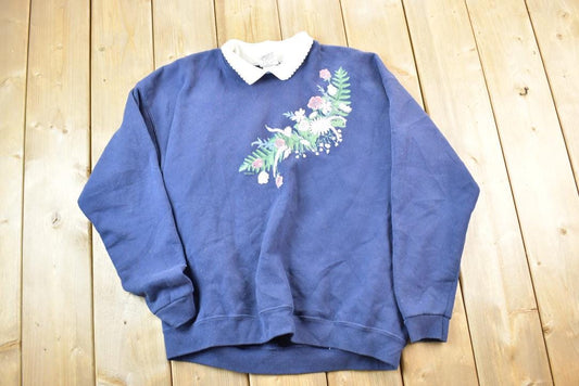 Vintage 1990s Nutmeg Floral Design Cute Collared Crewneck Sweater -