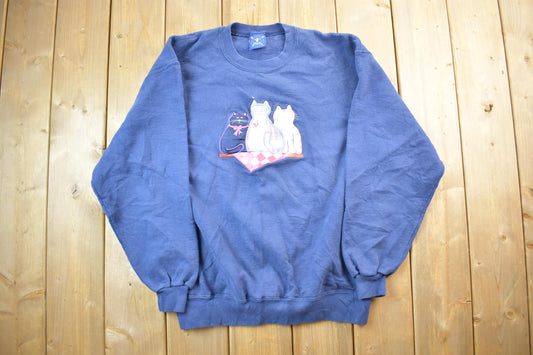 Vintage 1990s Oarsman Cute Cat Crewneck Sweater -