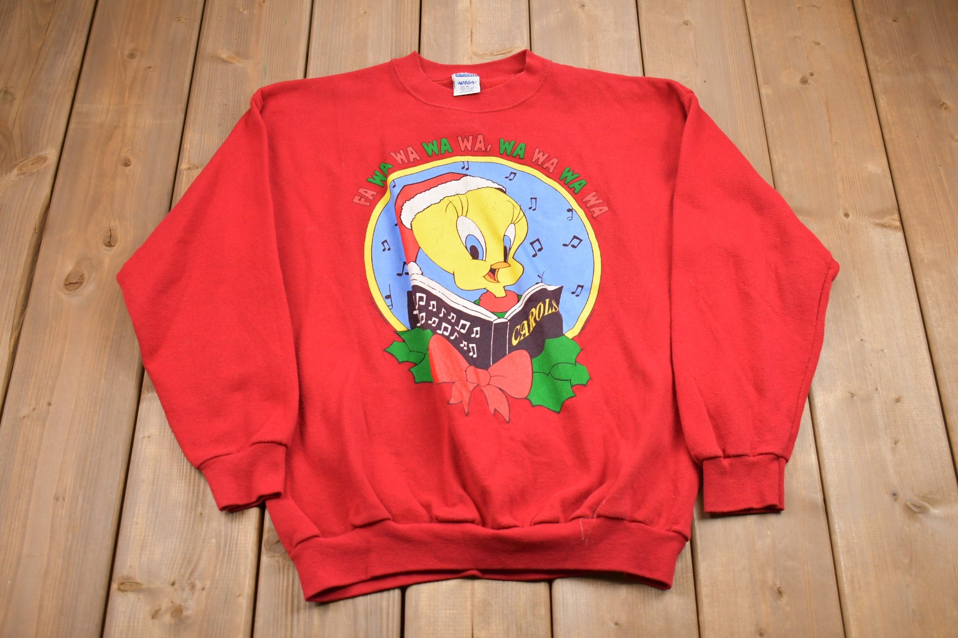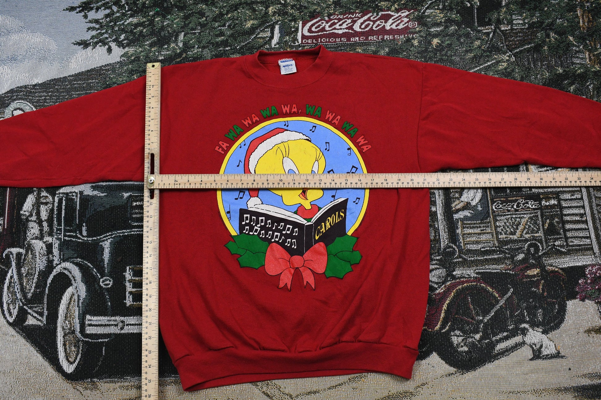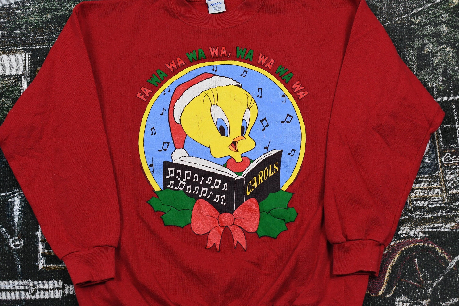 Vintage 1990s Looney Tunes Christmas Sweater , 90s Holiday Crewneck , Winter Wear , Festive Graphic Print , Tweety Bird , Made In USA -