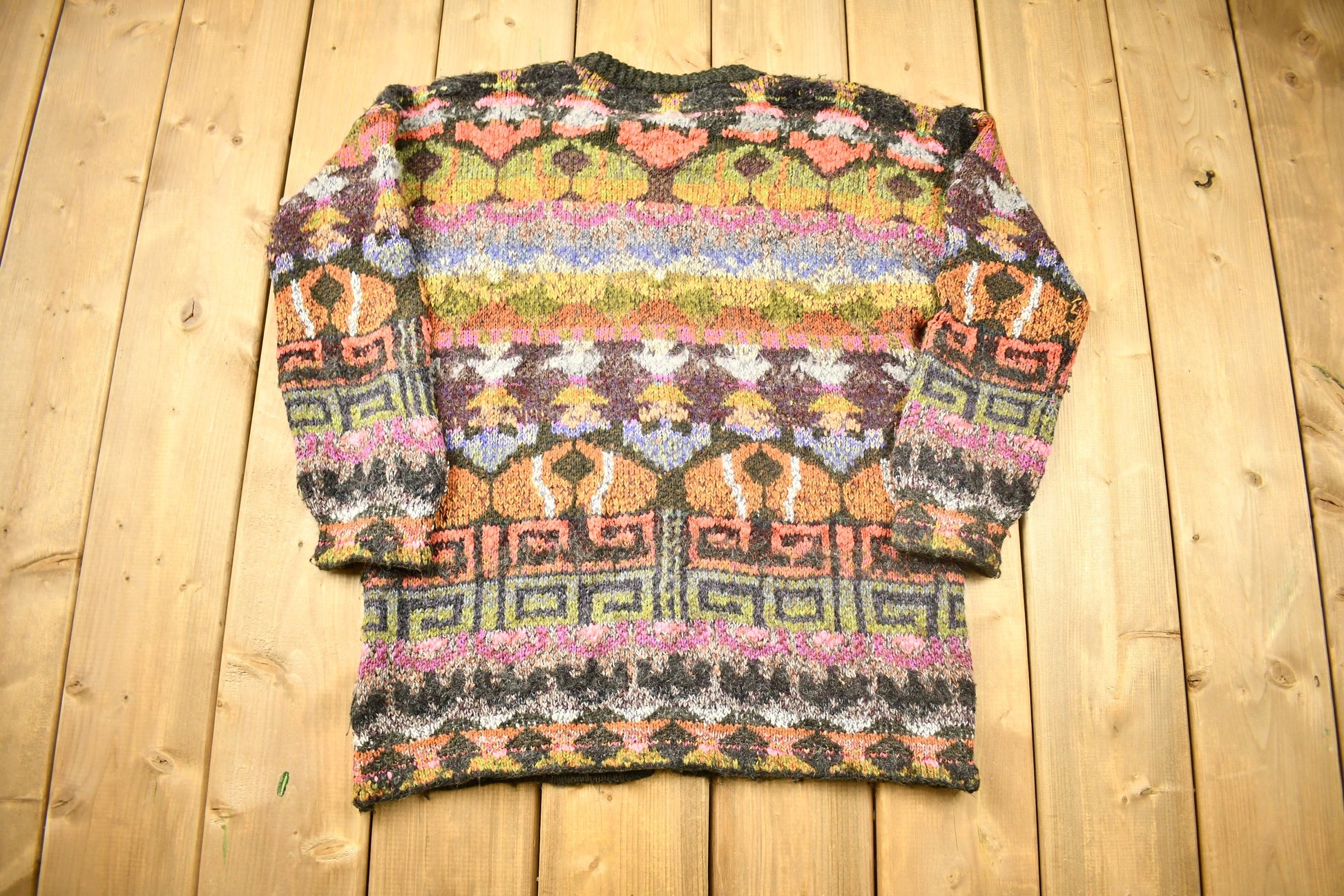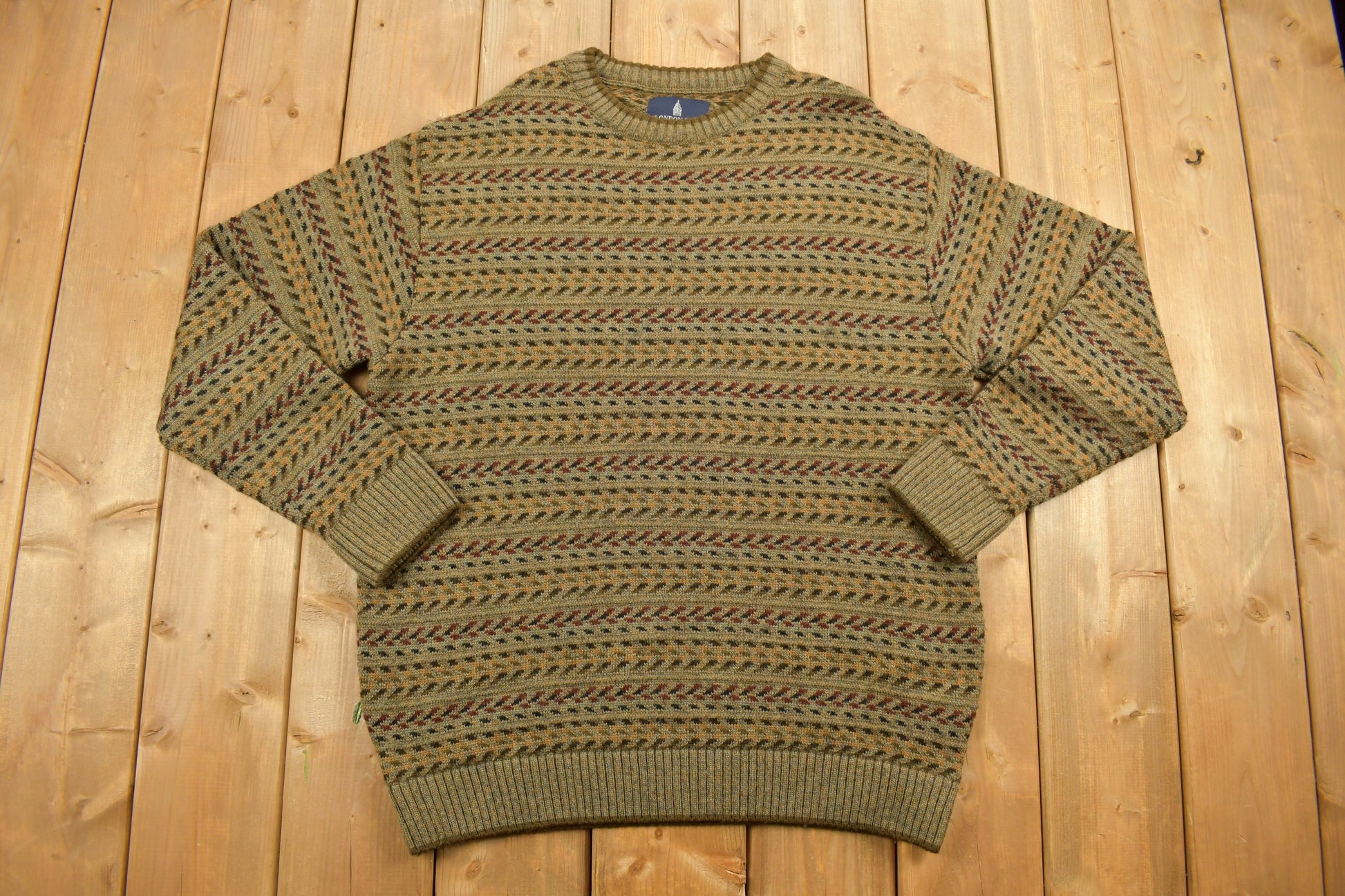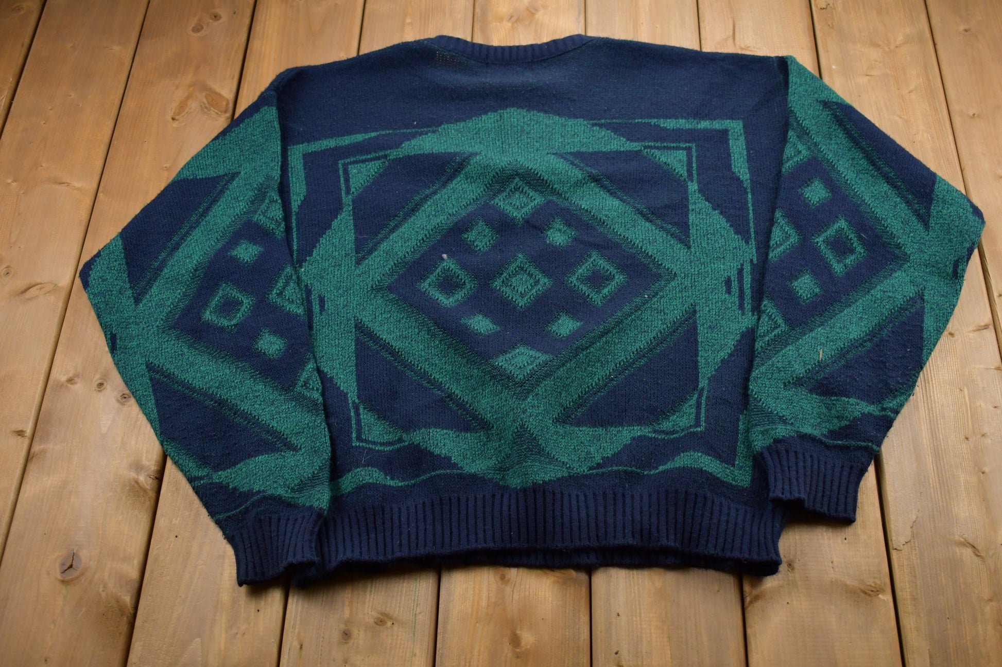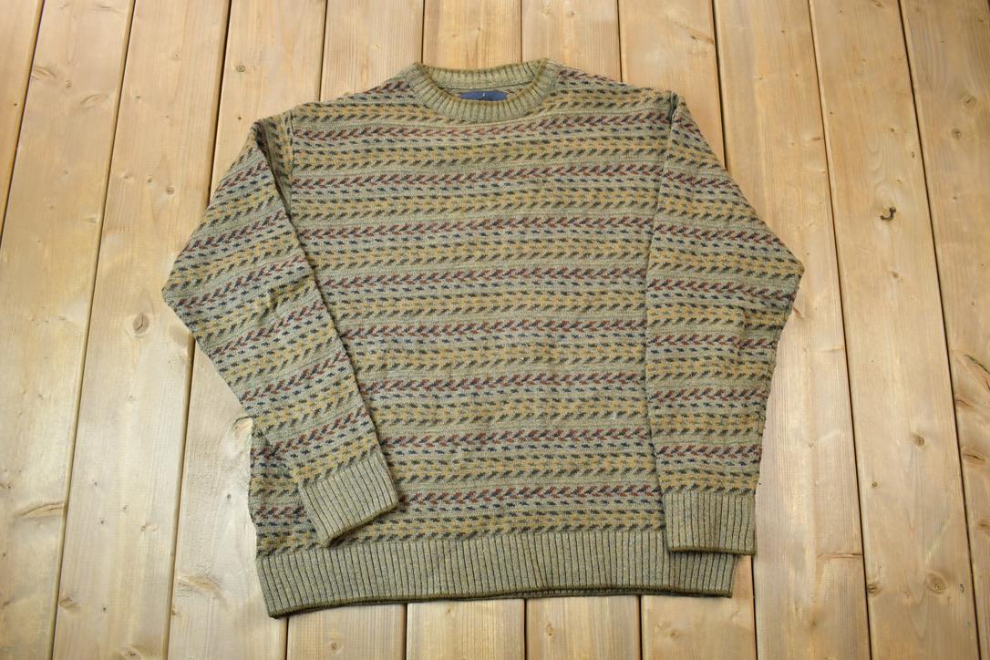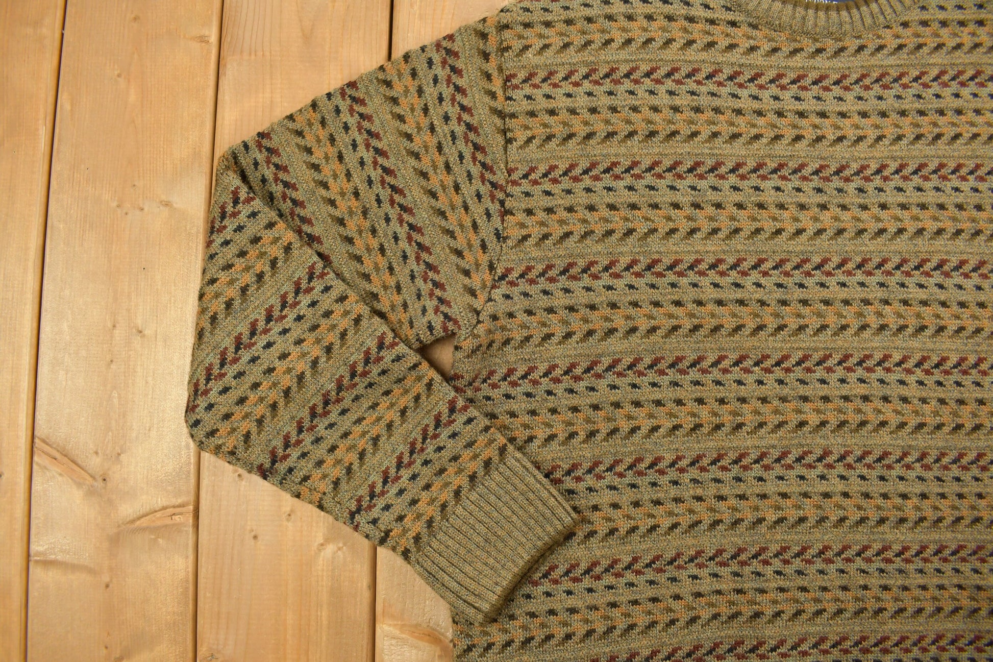 Vintage 1990s London Fog Abstract Pattern Knit Crewneck Sweater -