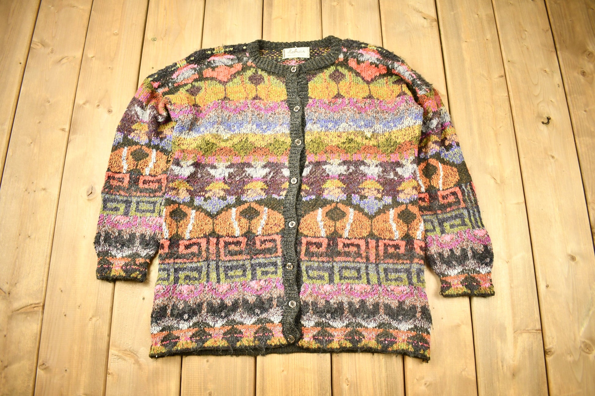 Vintage 1970s Helra Hand Knitted Cardigan Sweater -