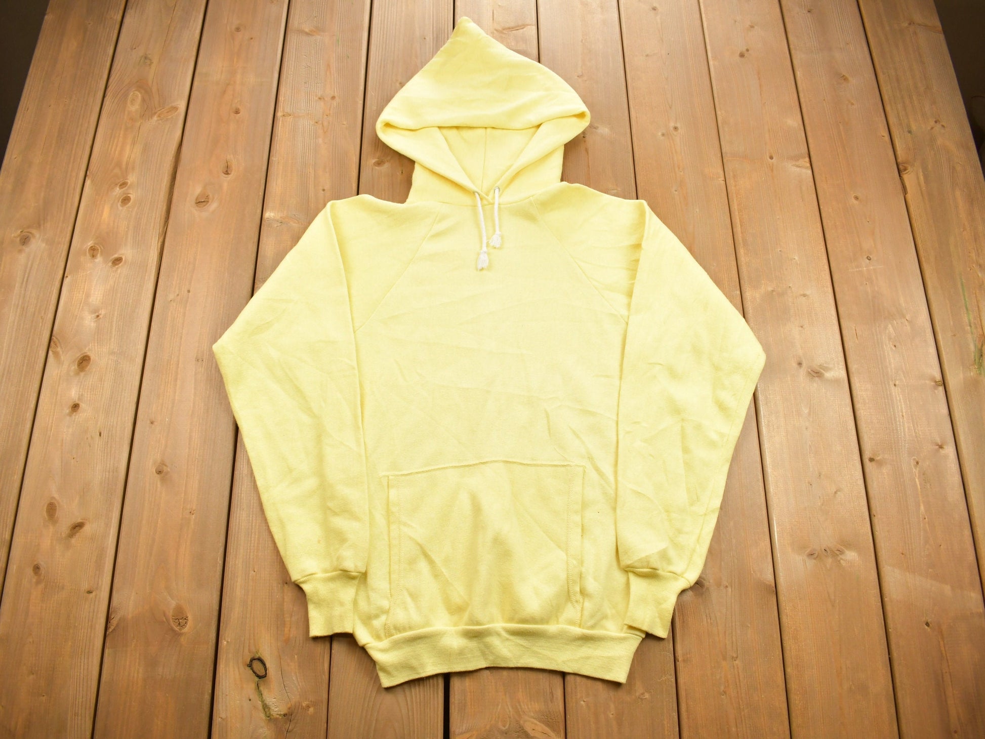 Vintage 1970s Health Knit Blank Yellow Hoodie -