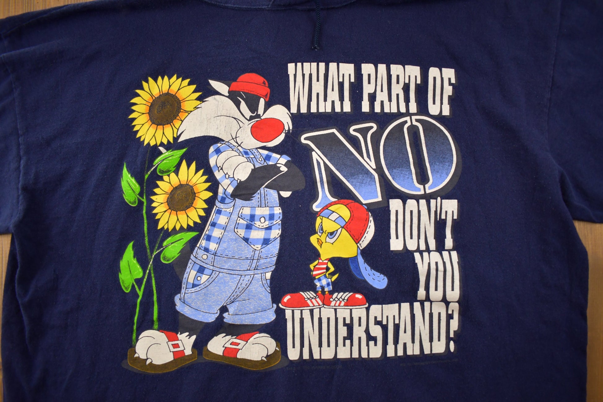 Vintage 1990s Looney Tunes Consent Graphic Short Sleeve Hoodie -