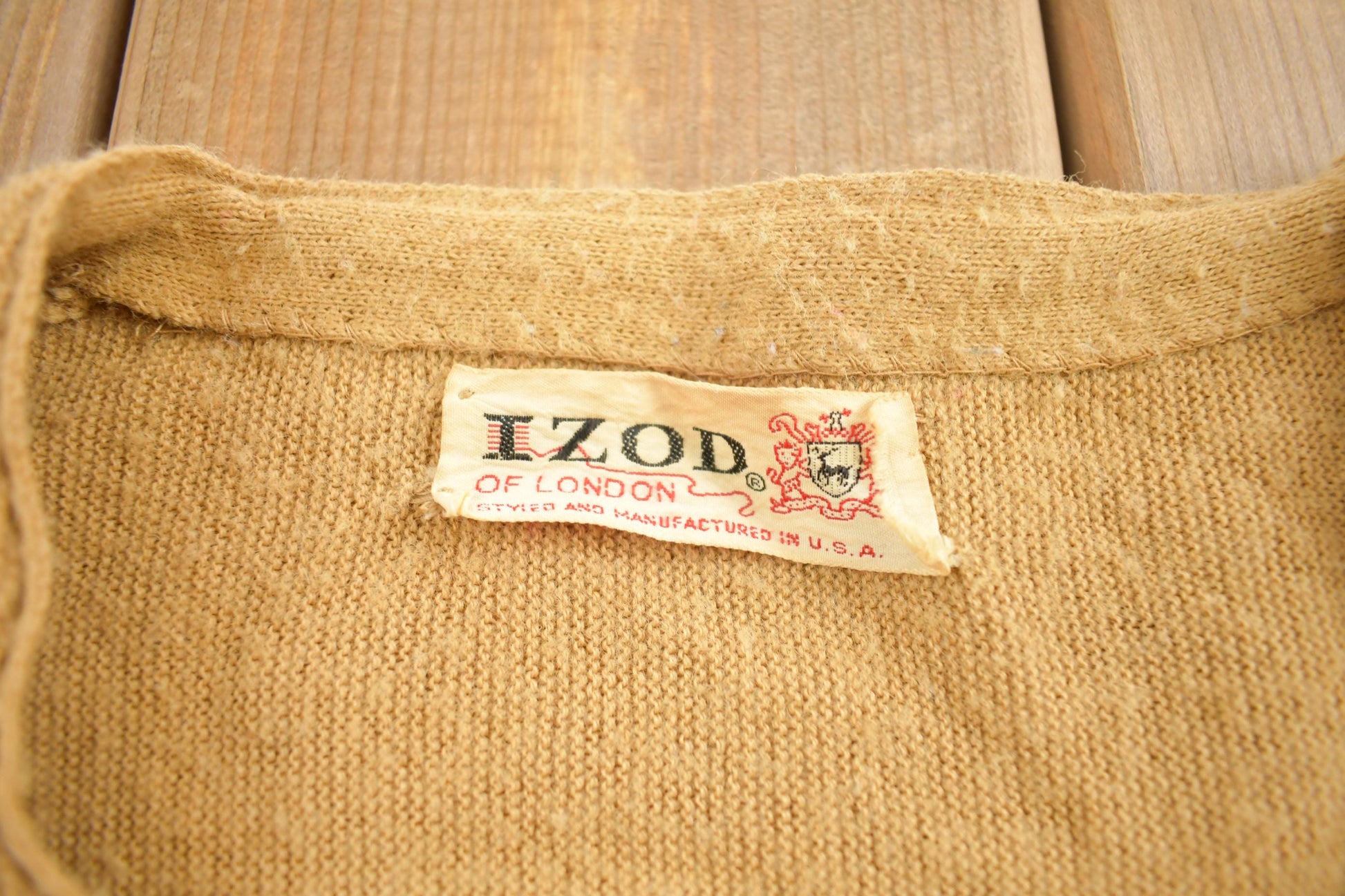 Vintage 1970s IZod Knit Embroidered Cardigan Sweater Made In USA -
