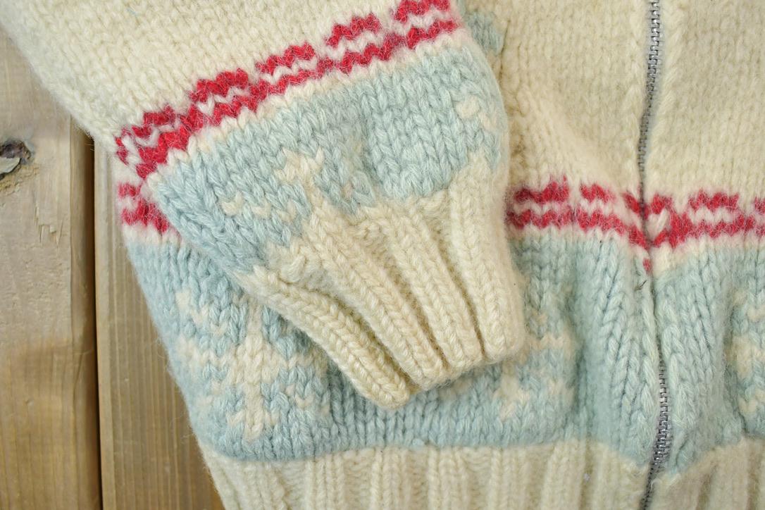 Vintage 1970s Golden Keel 100% Wool Full Zip Knit Christmas Sweater -