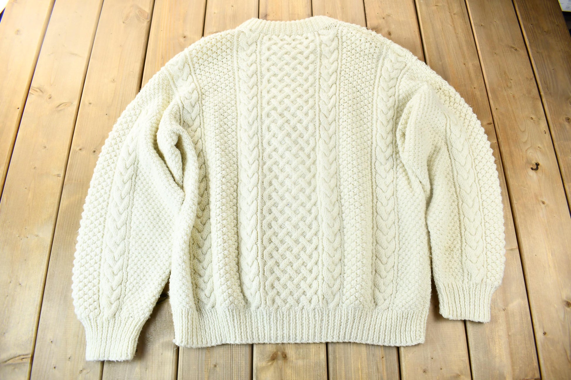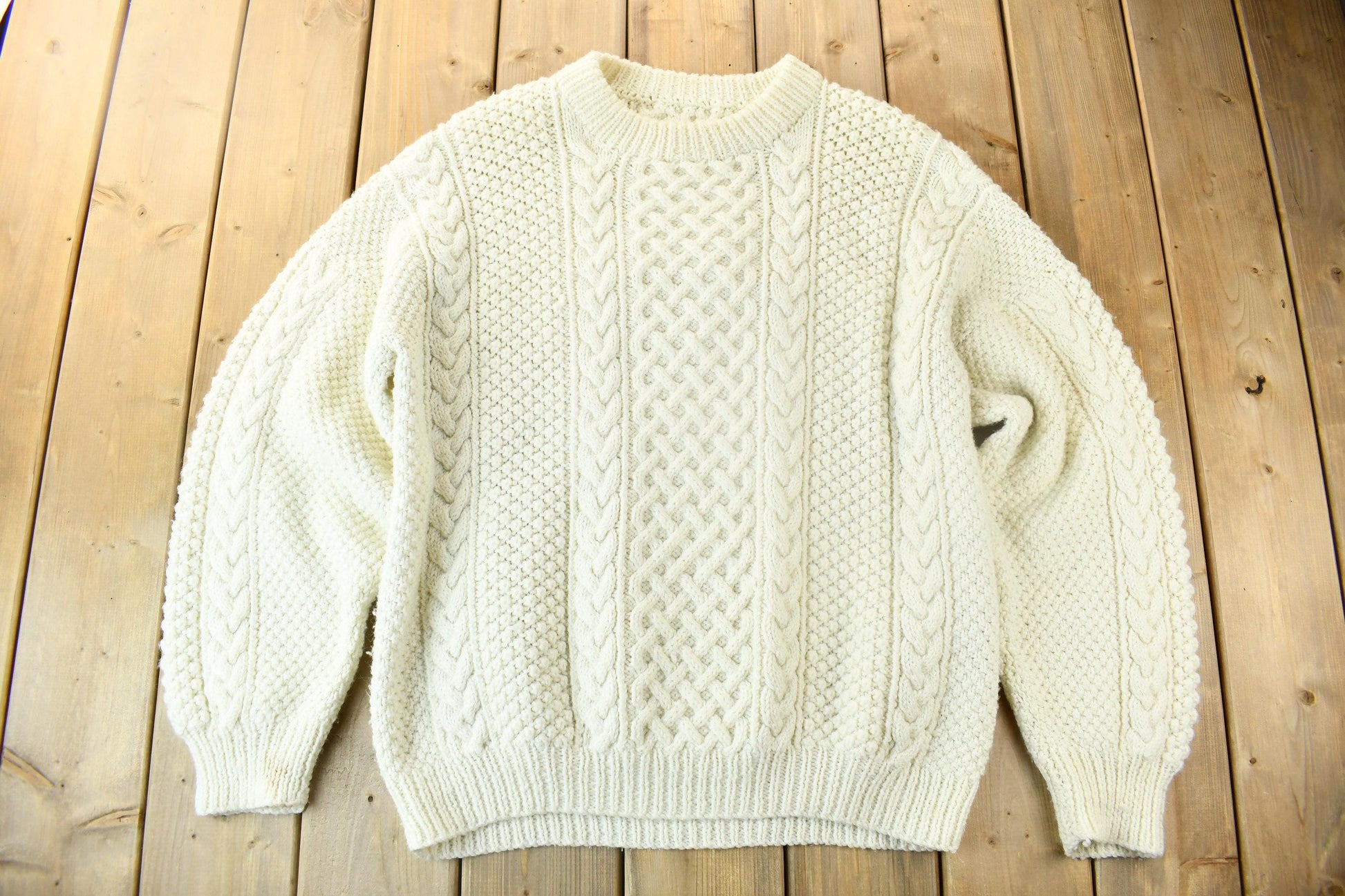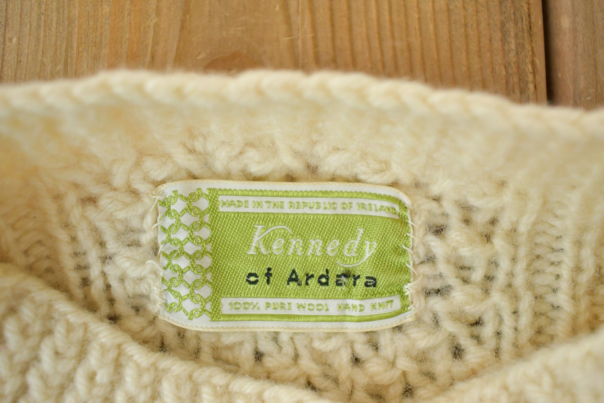 Vintage 1970s Kennedy Of Ardara Hand Knit Irish Wool 3D Colored Cable Knit Crewneck Sweater -