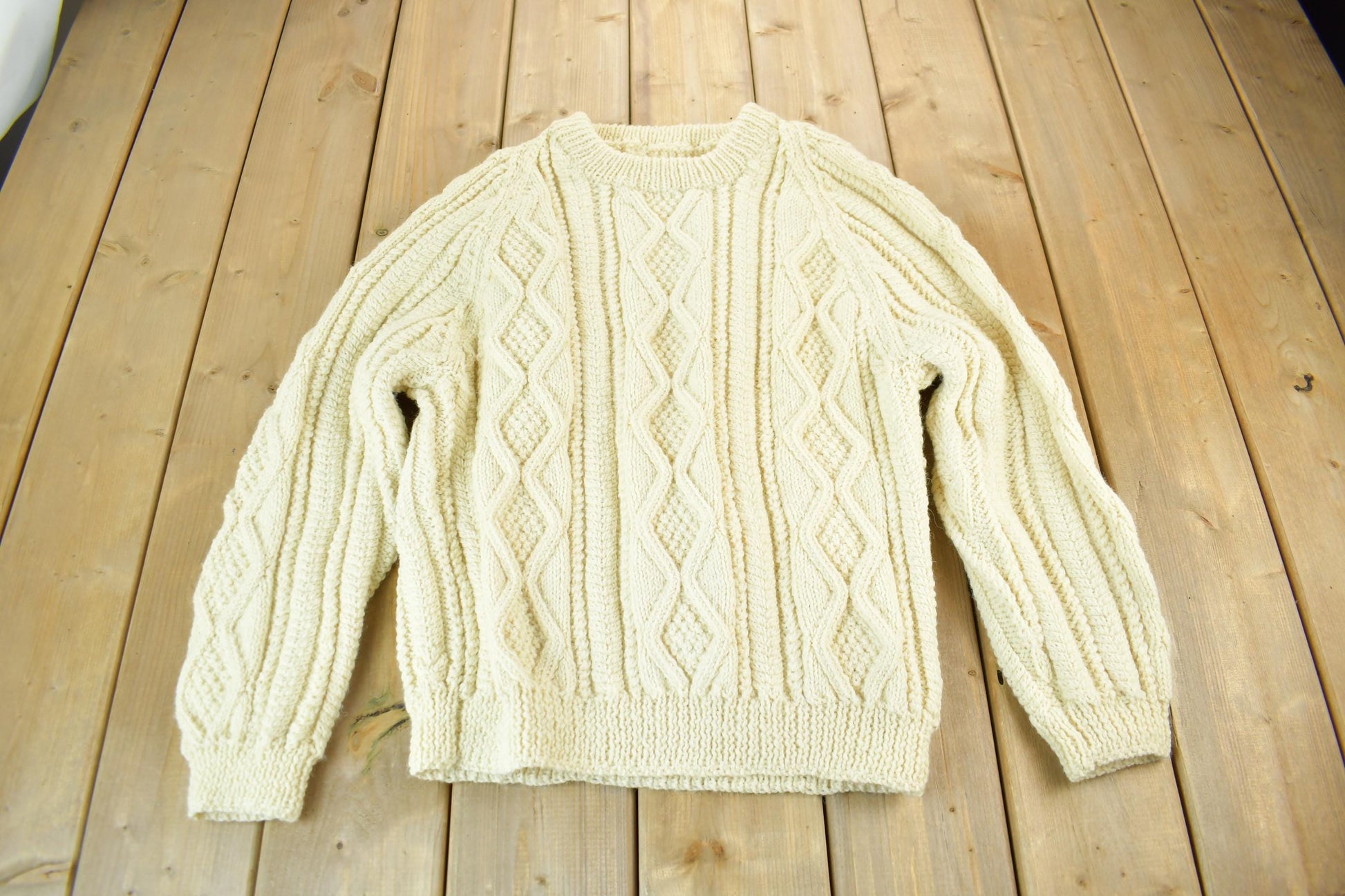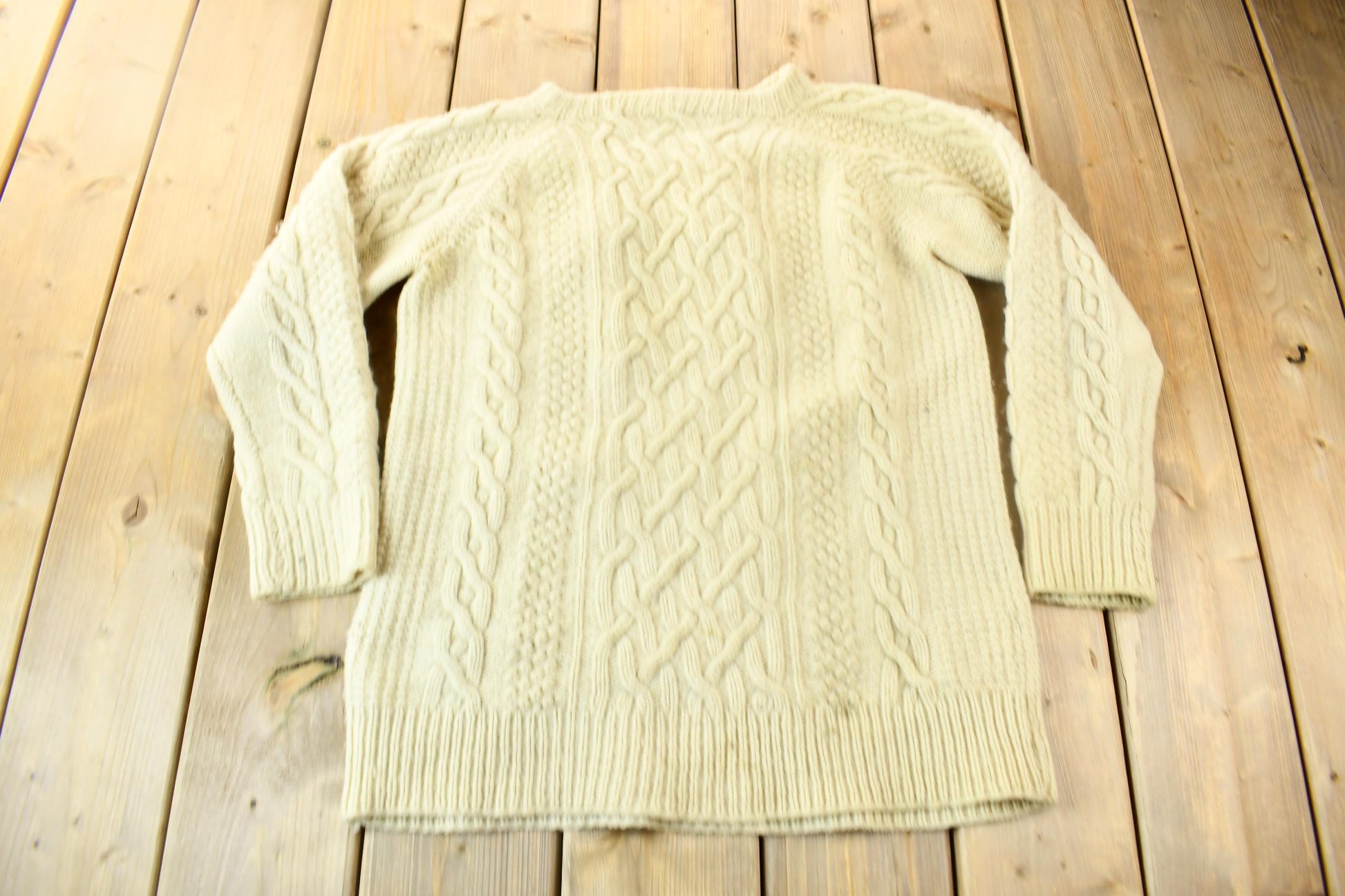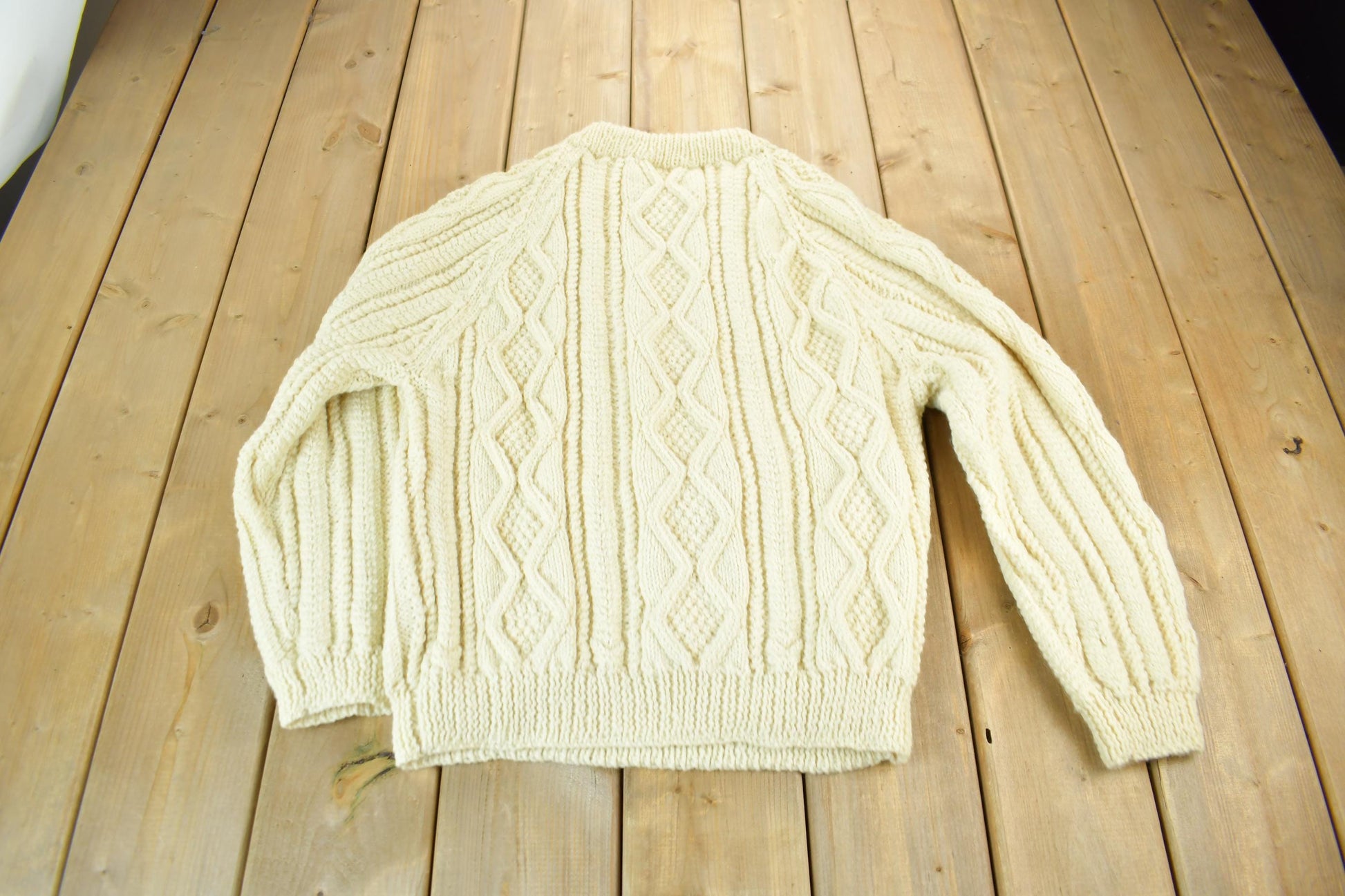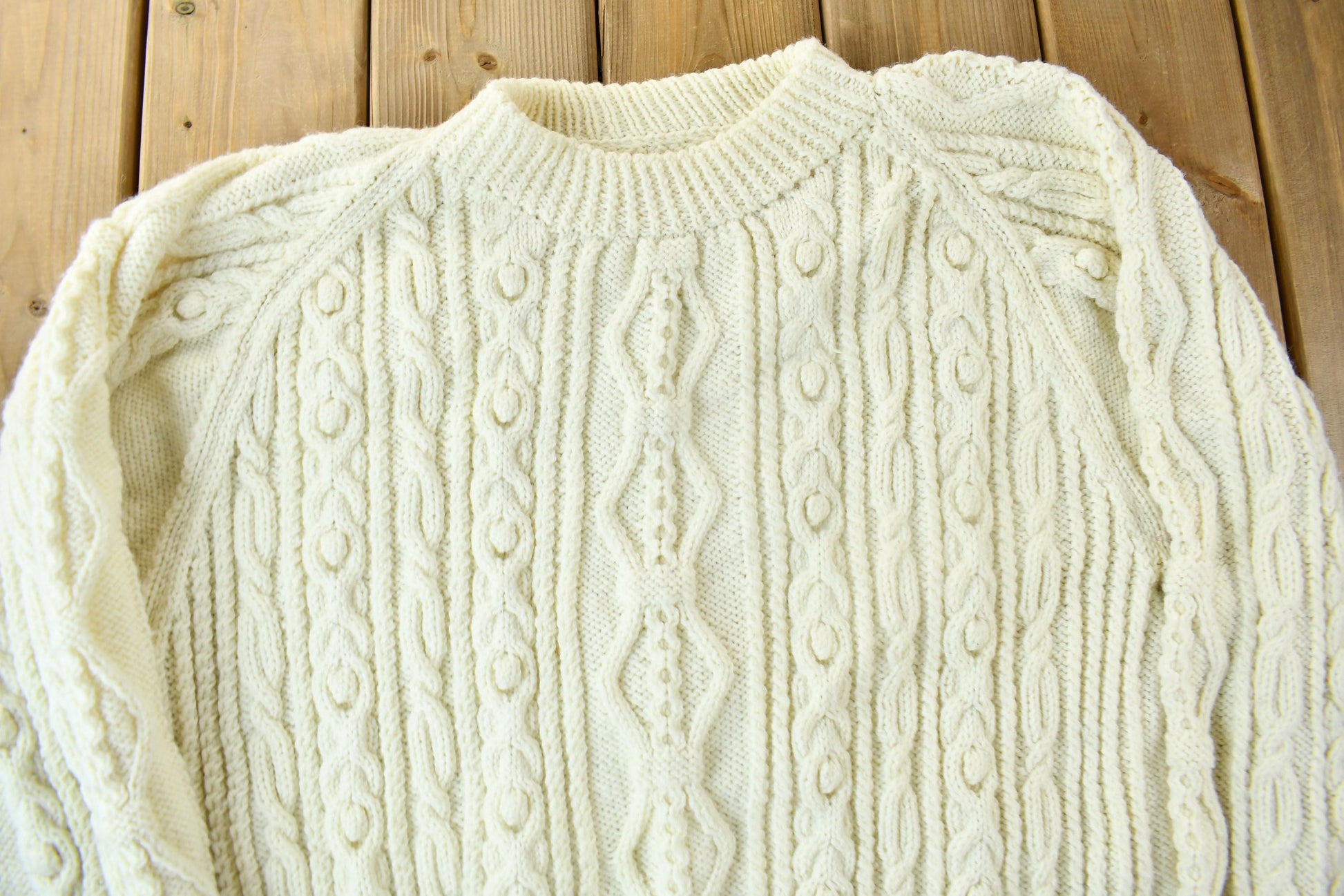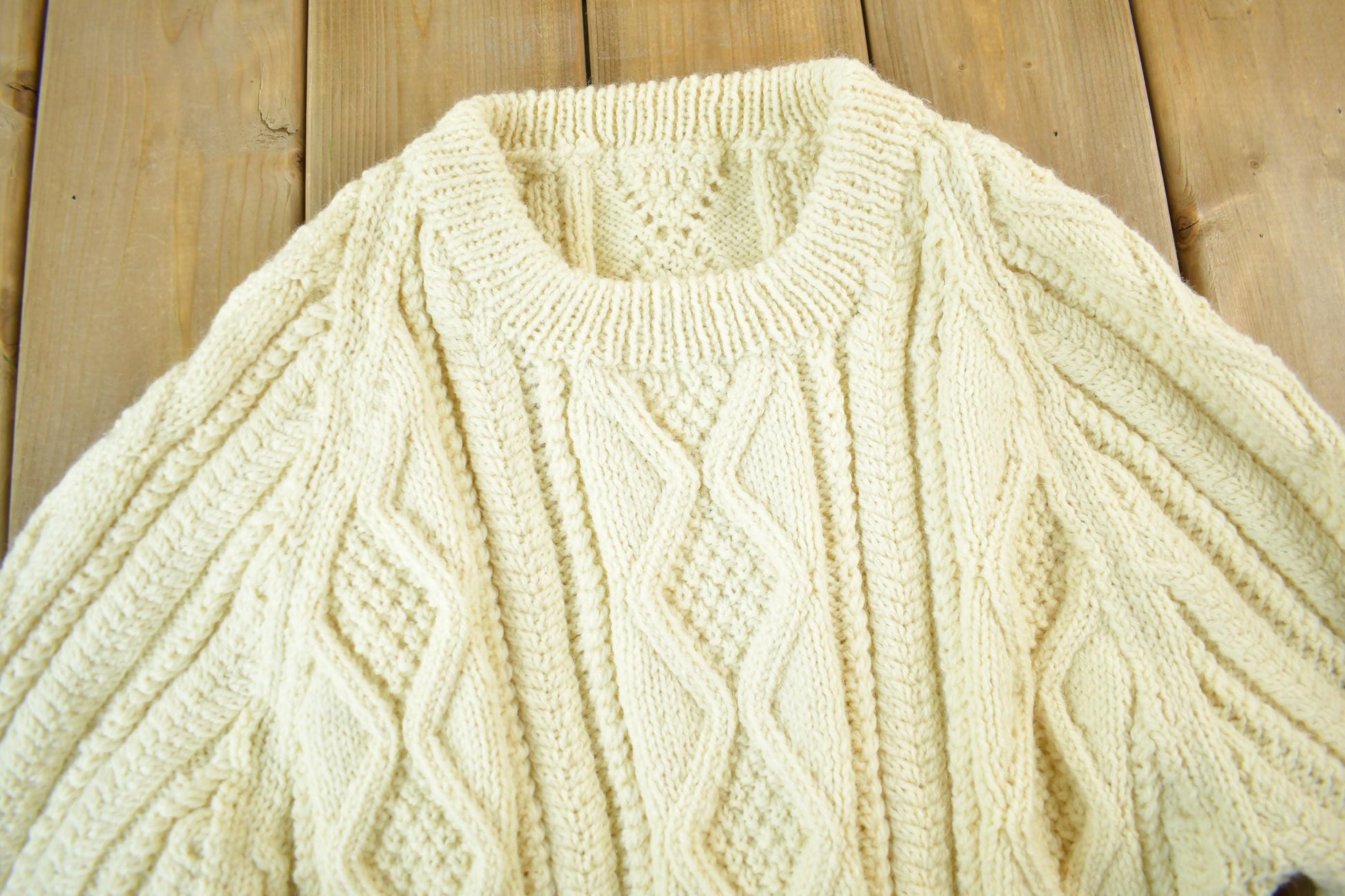 Vintage 1970s Hand Knit Cable Knit Crewneck Sweater -