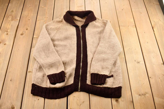 $76.00 CADVintage 1970s Knitted Zip Up Sweater