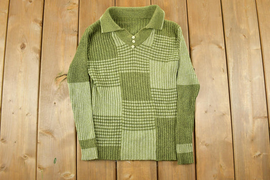 Vintage 1970s Knit Quarter Button Collared Sweater