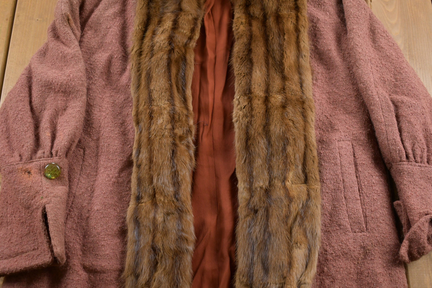 Vintage 1930s Miss Mode Full Length Fur Trim Coat