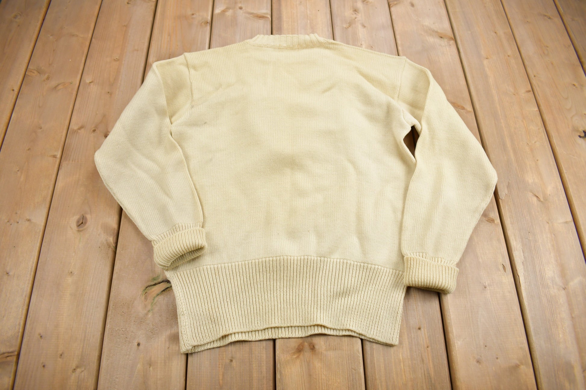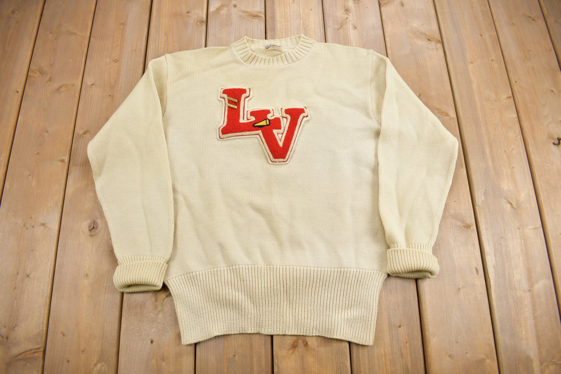 Vintage 1950s 100% Wool Collegiate Varsity Style Knit Sweater "LV" True Vintage Made In USA