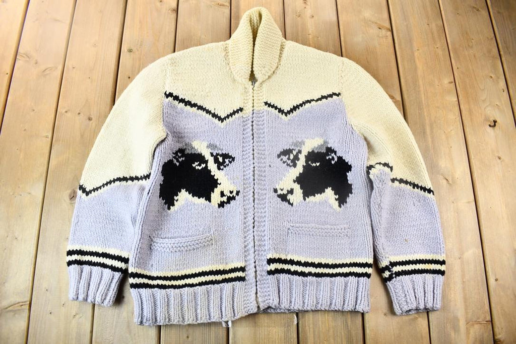 Vintage 1950s Hand-Knit Cow Theme Cowichan Sweater