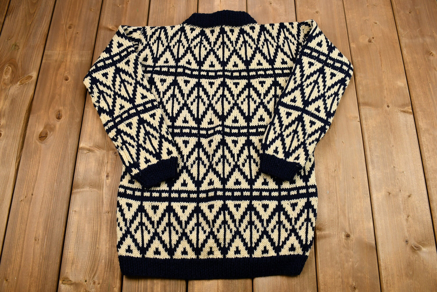 Vintage 1960s Abstract Hand-Knit Mock-Neck Sweater