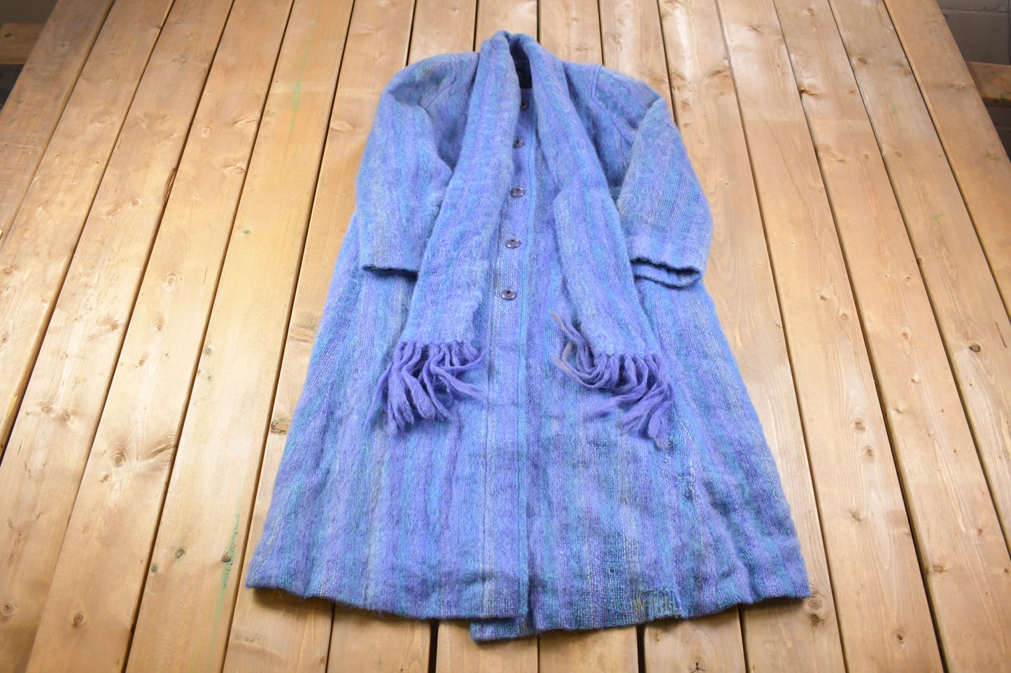 Vintage 1970s 100% Blue Mohair Overcoat With Scarf