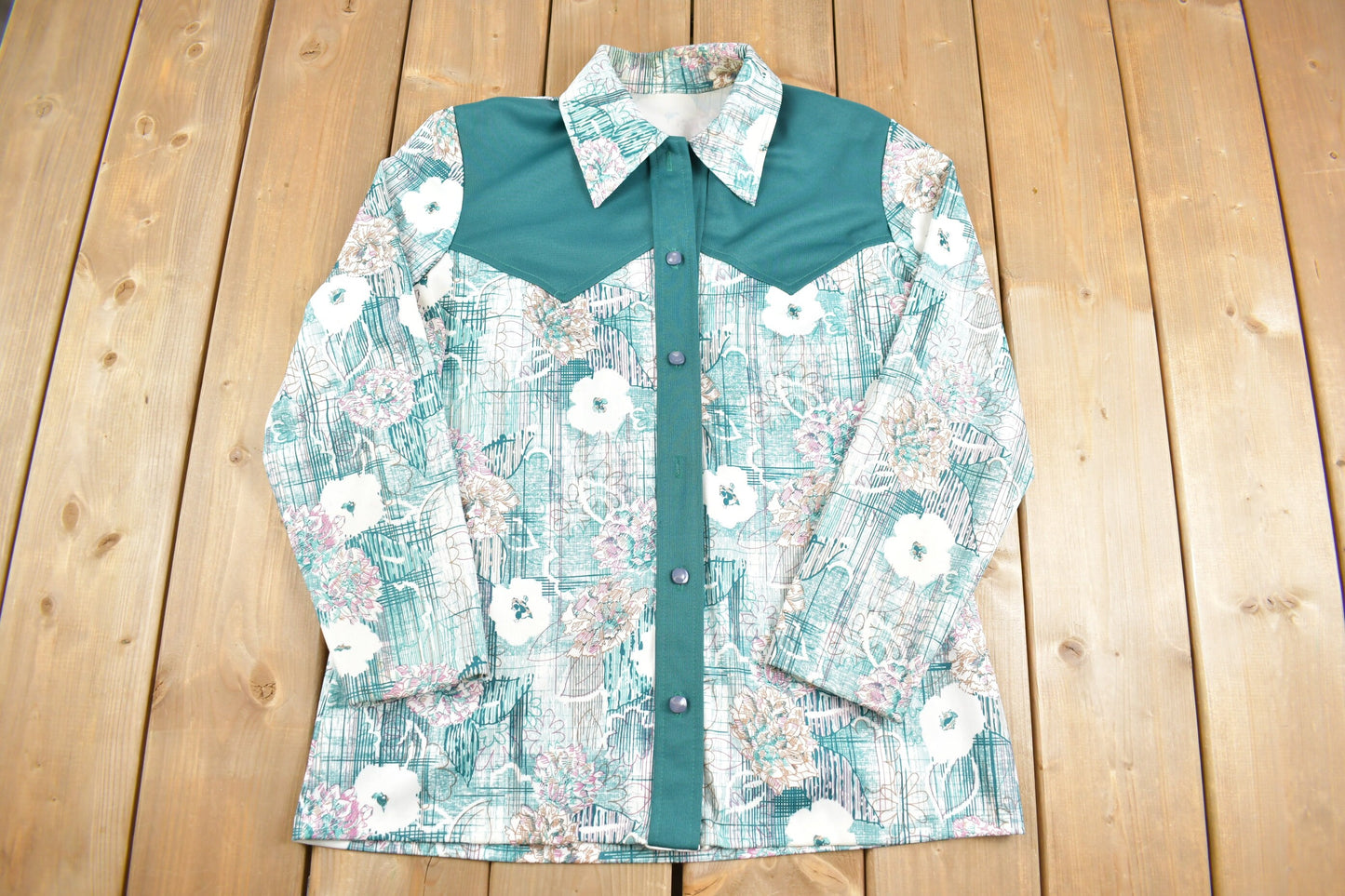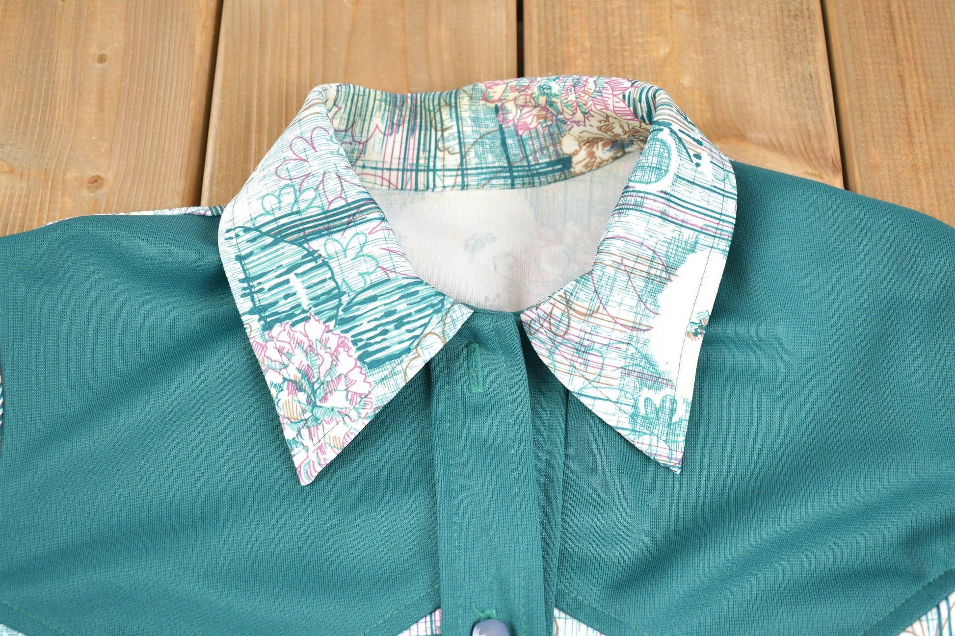 Vintage 1970s Abstract Floral Western Button Up Shirt