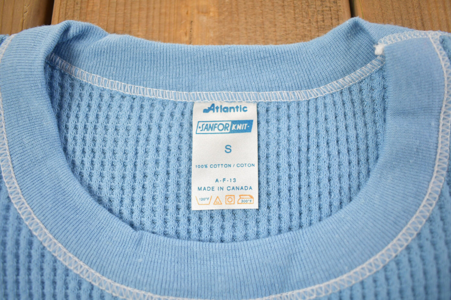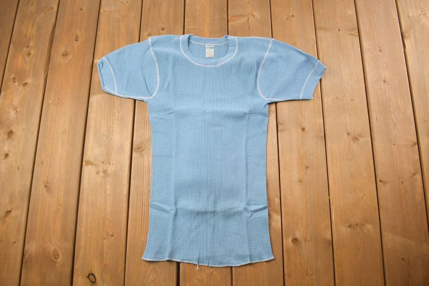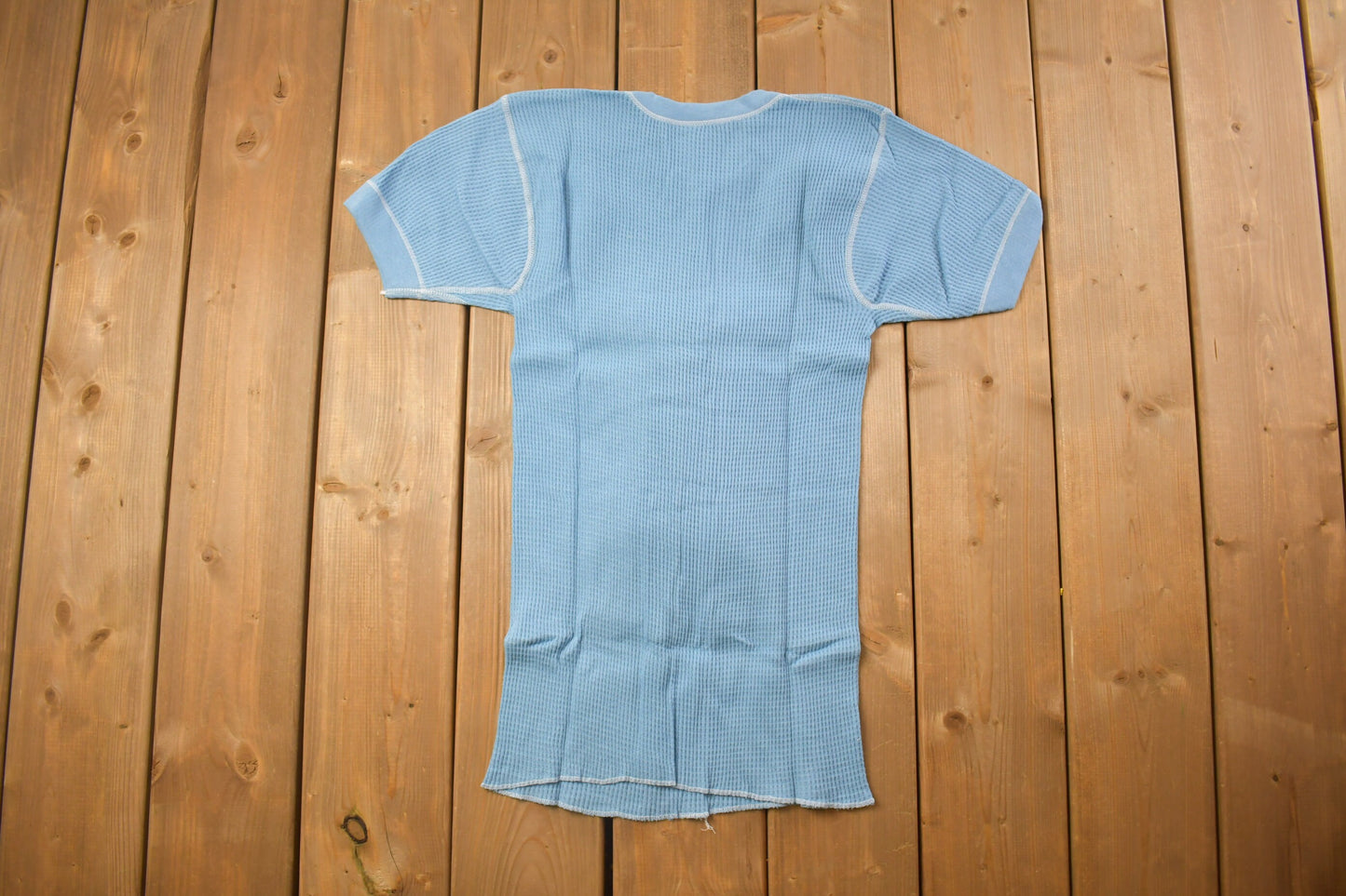 Vintage 1970s Deadstock Atlantic Sanfor Knit Thermal Blue T Shirt