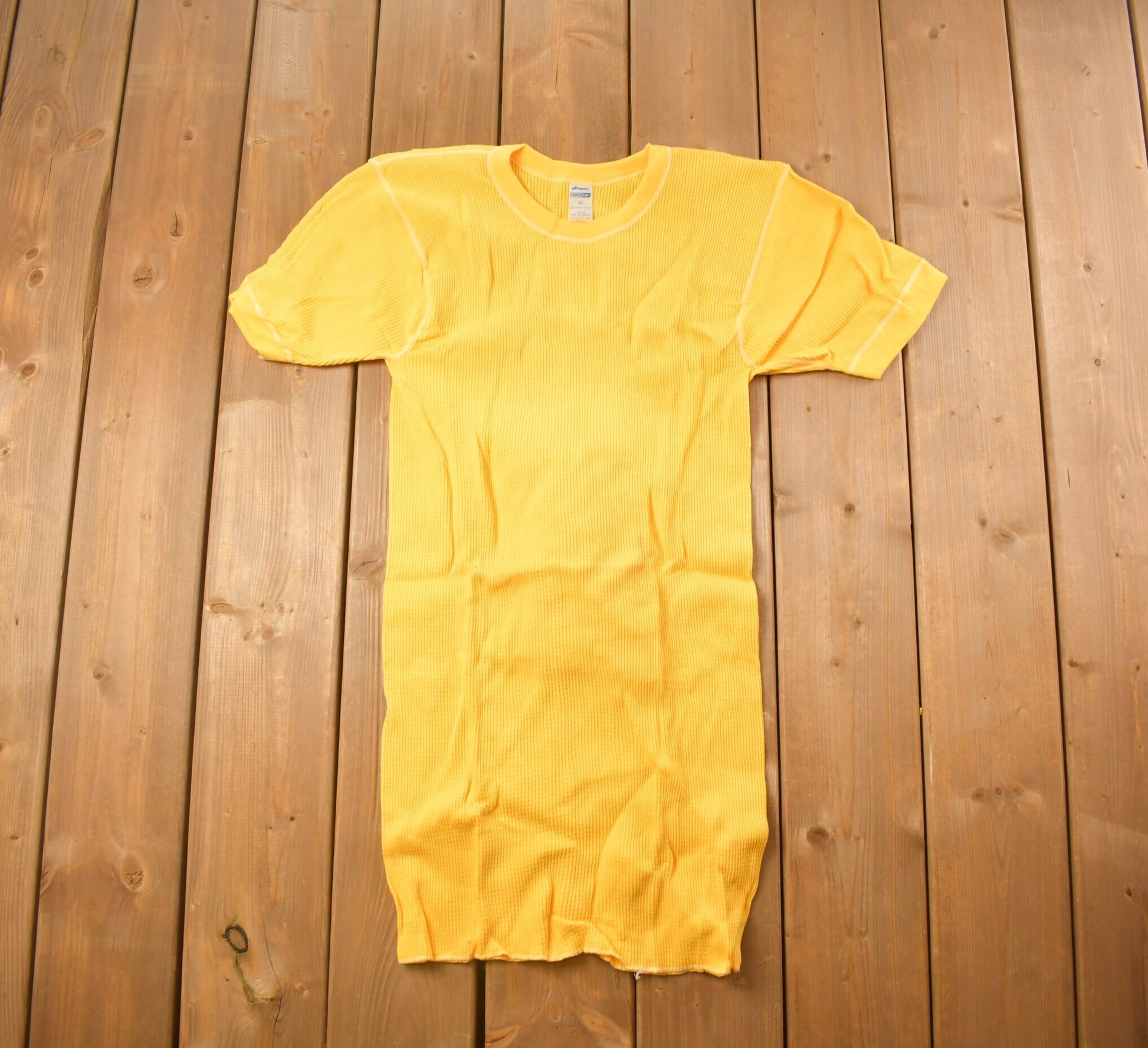 Vintage 1970s Deadstock Atlantic Sanfor Knit Thermal Yellow T Shirt
