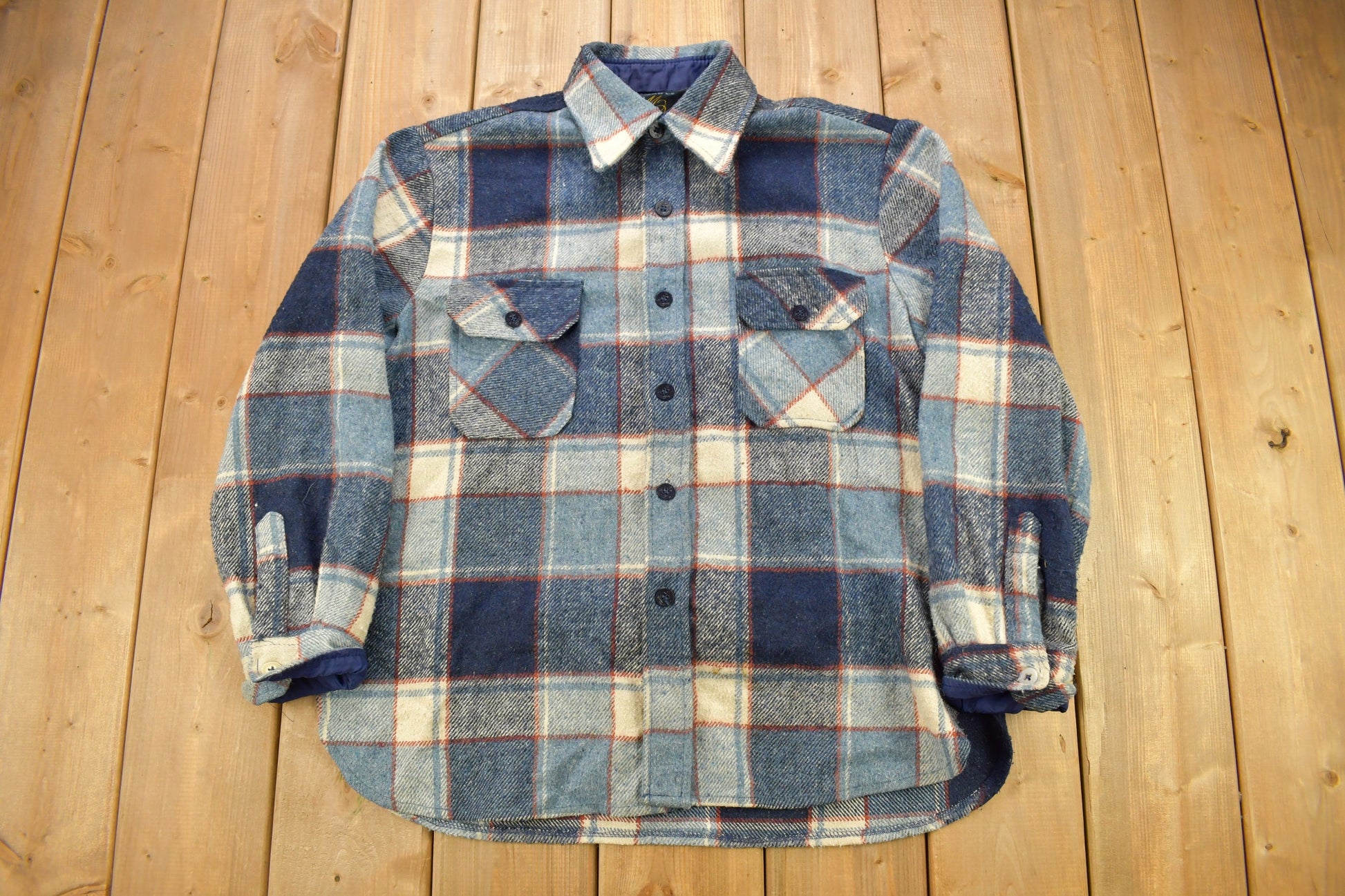 Vintage 1980s Double Breasted Plaid Flannel Button Up Shirt