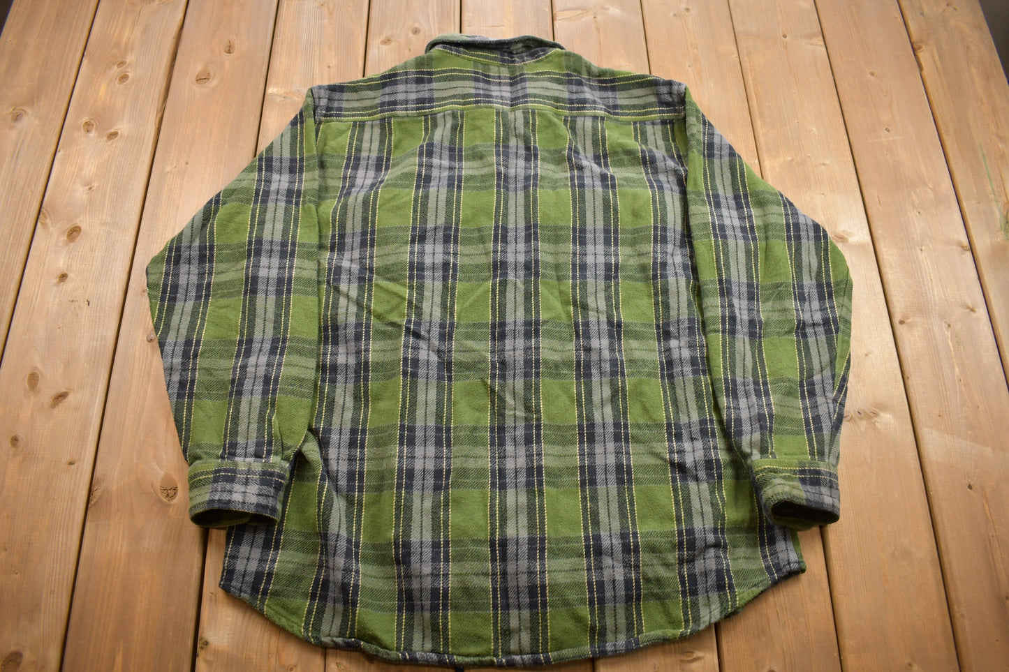 Vintage 1990s 100% Cotton Striped Plaid Flannel Button Up Shirt