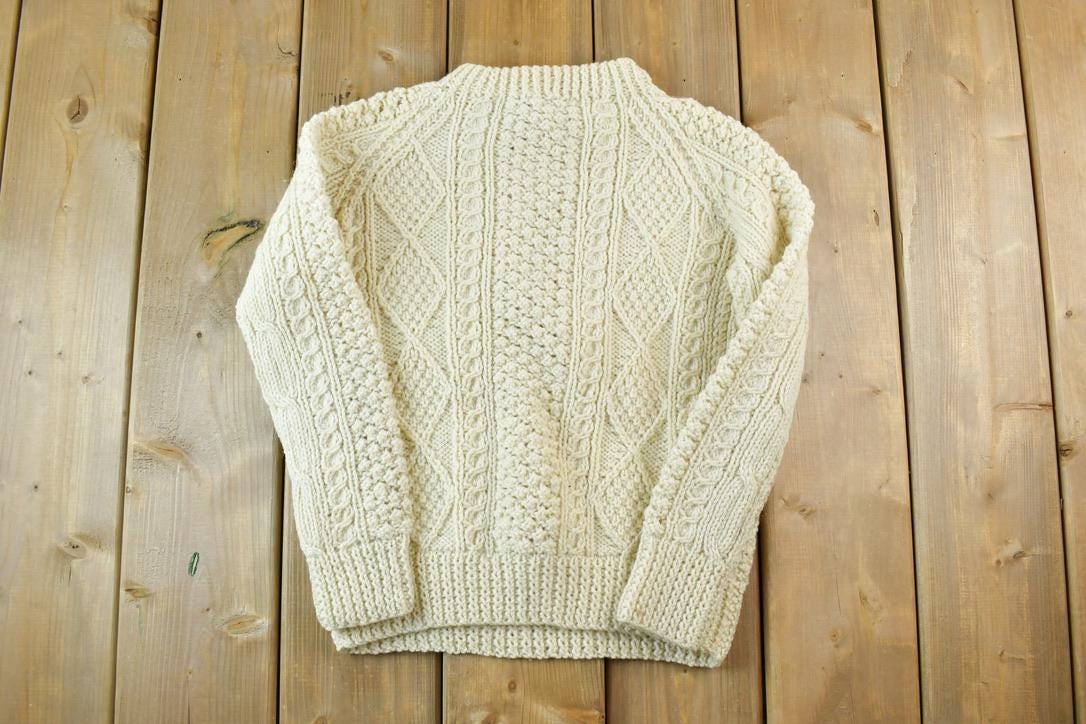 Vintage 1990s 100% Wool Cable Knit Crewneck Sweater