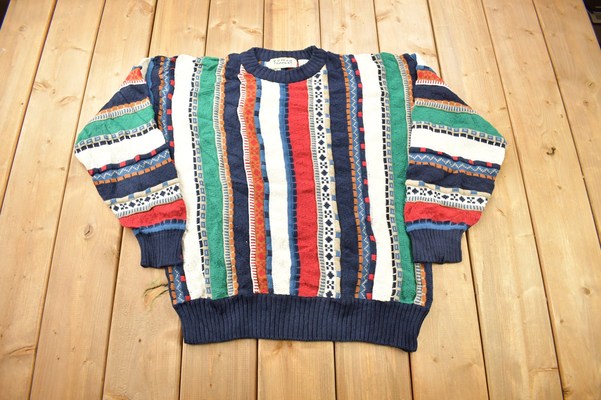 Vintage 1990s 3D Cable Knit Cotton Traders Sweater