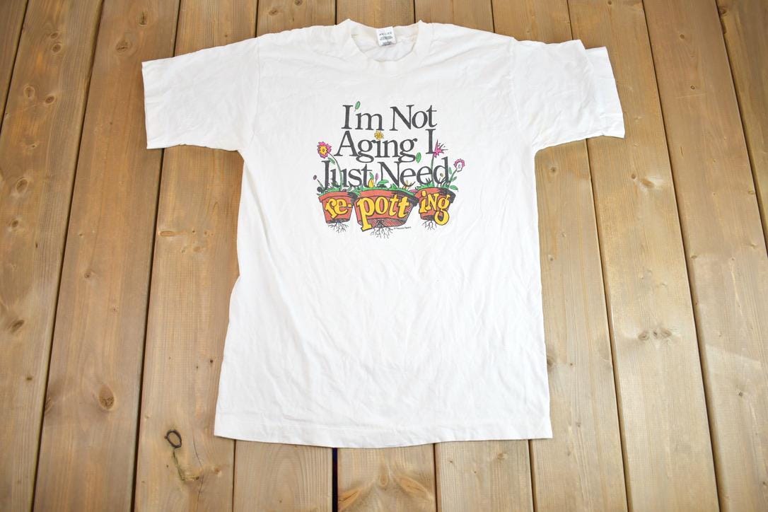 Vintage 1990s "I'm Not Aging I Just Need Repotting" Single Stitch Graphic T-Shirt