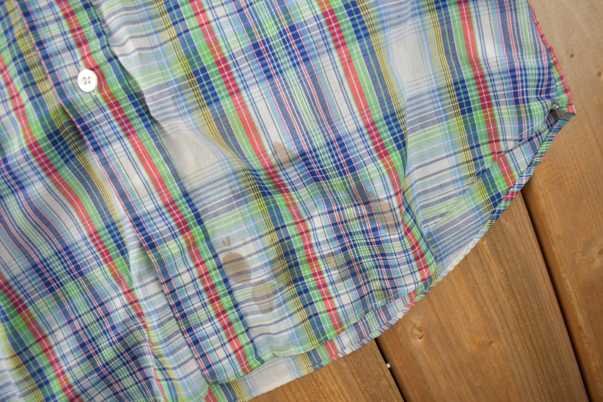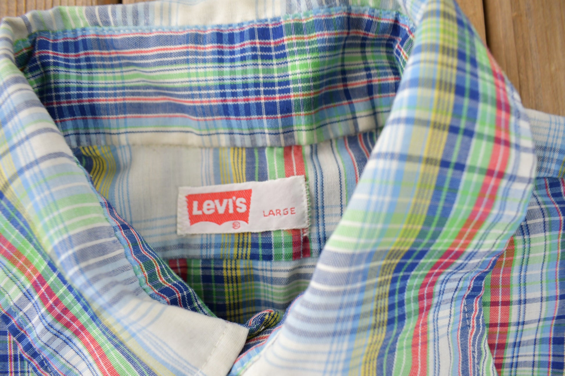 Vintage 1990s Levi's White Tab Short Sleeve Plaid Button Up Flannel Shirt