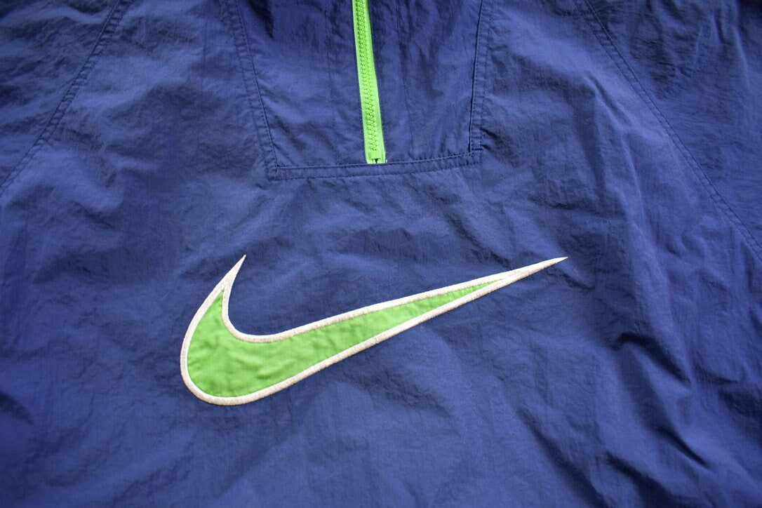 Vintage 1990s Nike Embroidered Mid Swoosh White Tag Windbreaker Jacket Athletic Spring Summer Sportswear