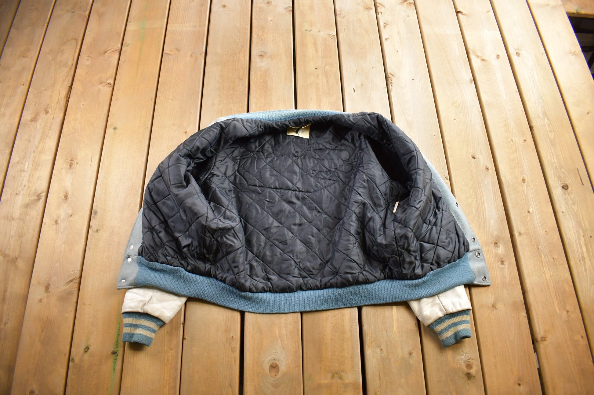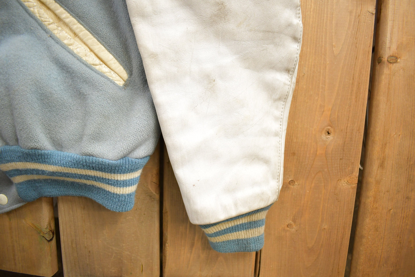 Vintage 1950s Thronridge Highschool Leather & Wool Embroidered Varsity Jacket Made In USA