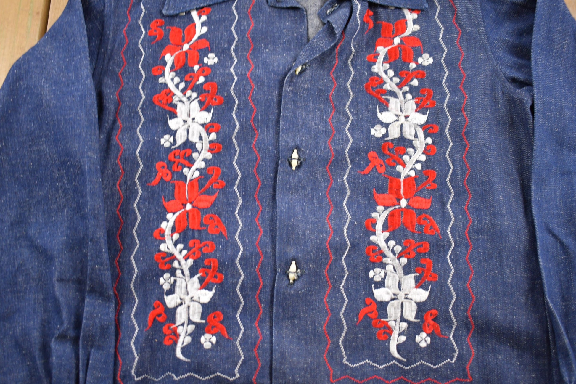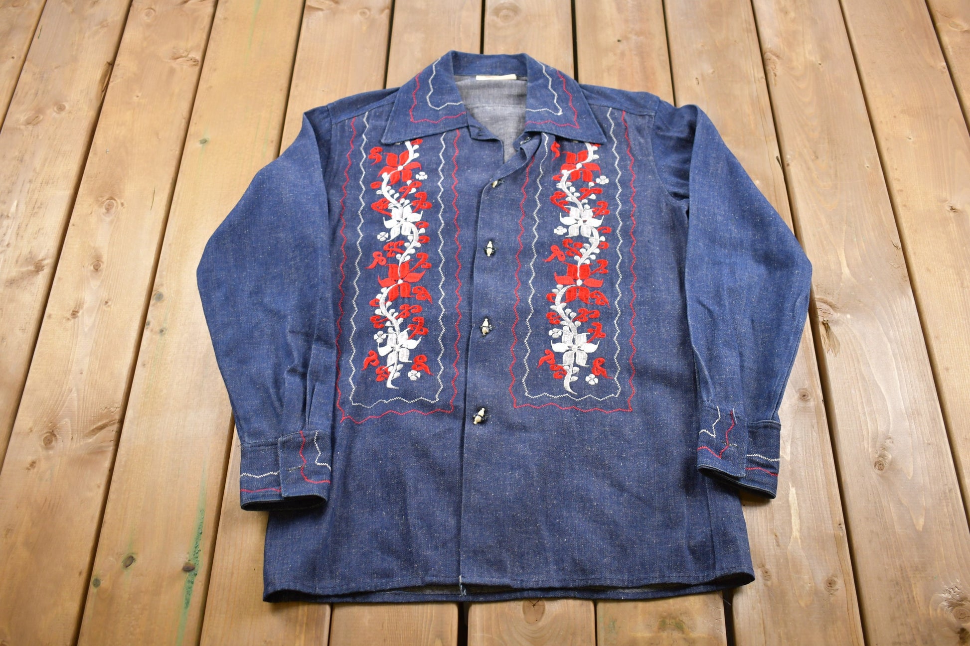 Vintage 1960s Floral Embroidered Denim Jean Jacket
