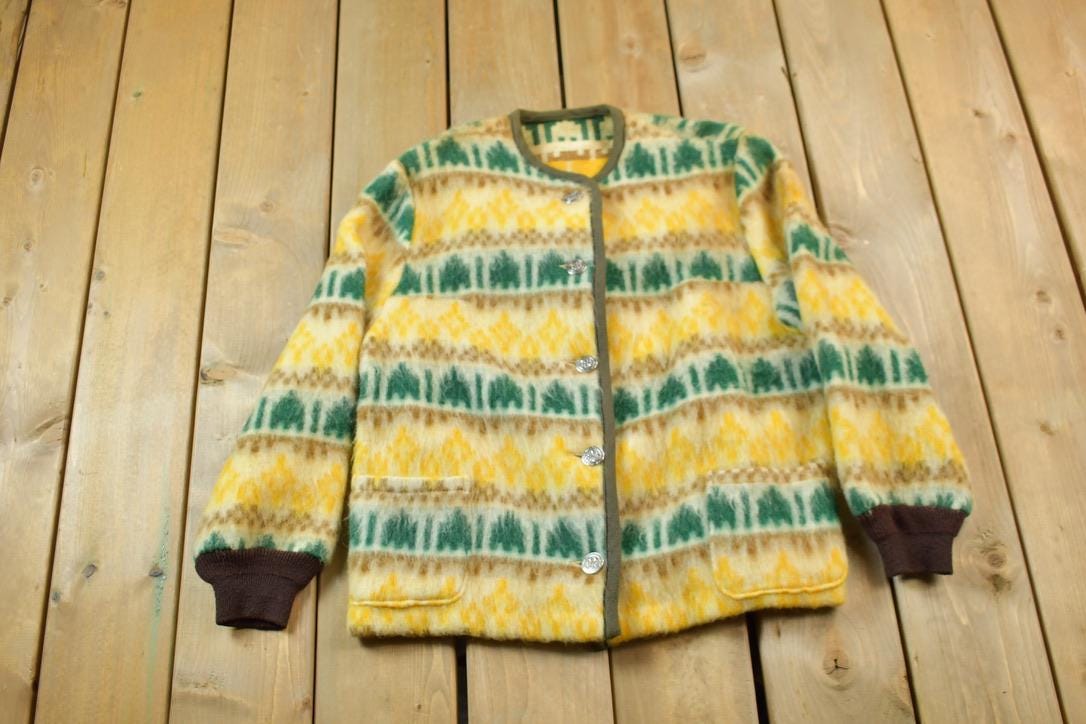 Vintage 1960s Patterned Mohair Cardigan Sweater