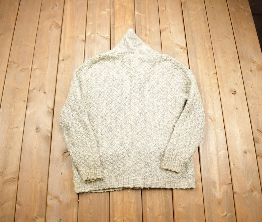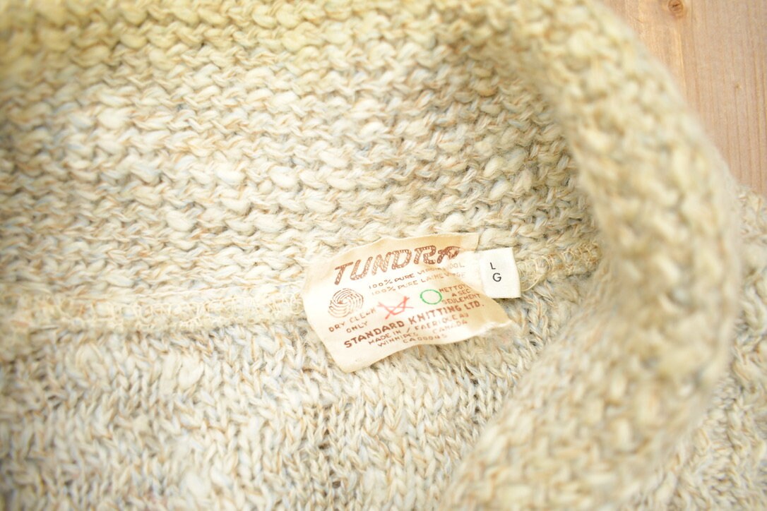 Vintage 1970s 100% Wool Tundra Knit Shawl Collar Cardigan Sweater