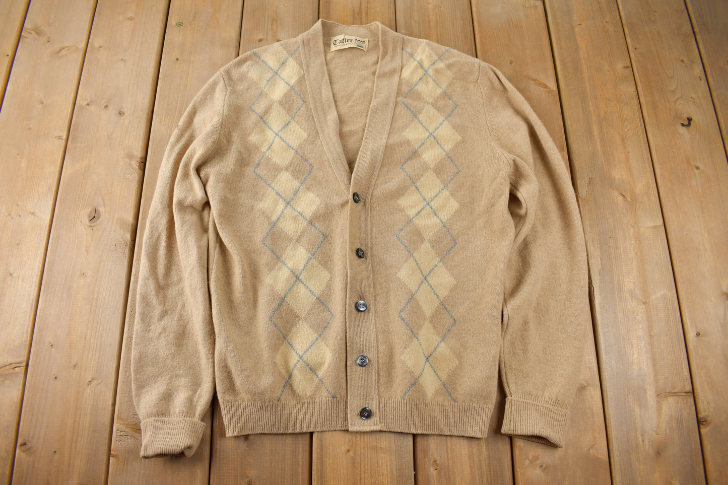 Vintage 1970s Catler Argyle Knit Cardigan Sweater Made In Great Britain Size Small