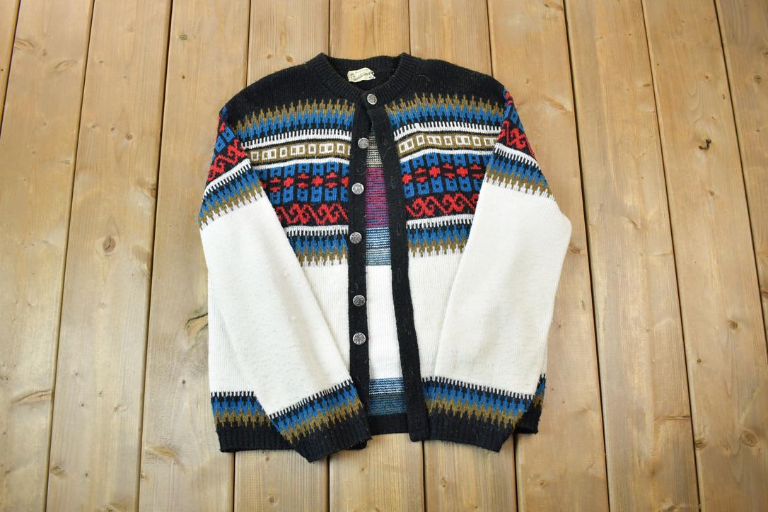 Vintage 1970s Custom Styled Sportswear Knit Crewneck Button Up Sweater