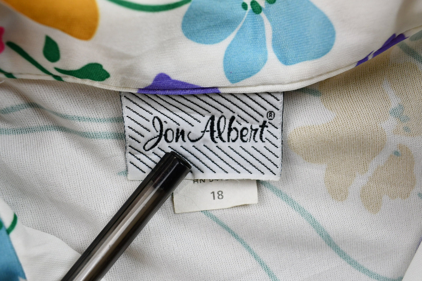 Vintage 1970s Floral Polyester Button Up Short Sleeve Blouse