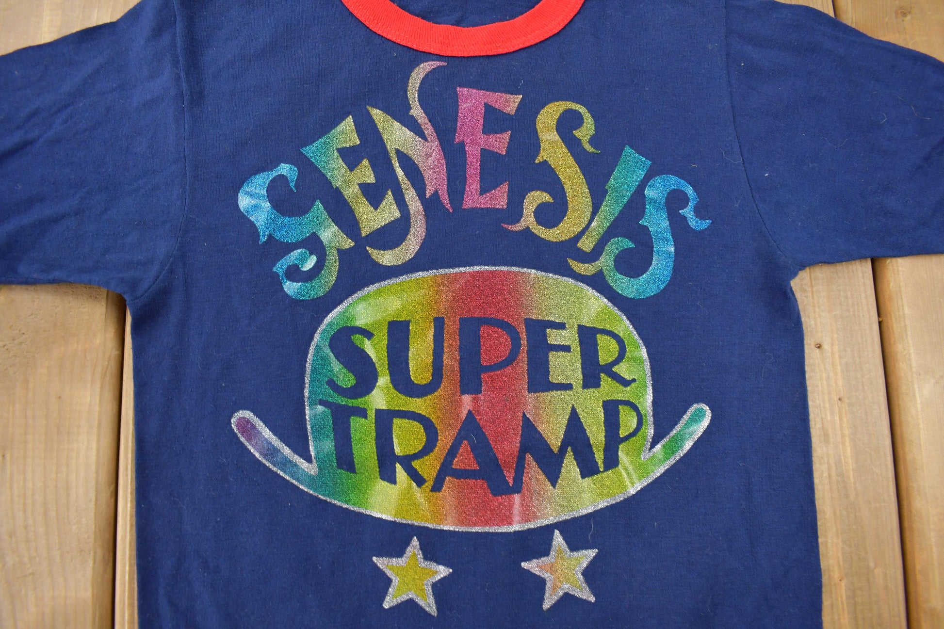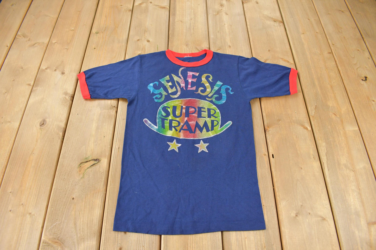 Vintage 1970s Genesis Super Tramp Led-Zeppelin rush Aerosmith Graphic Ringer Band Tee Made in USA