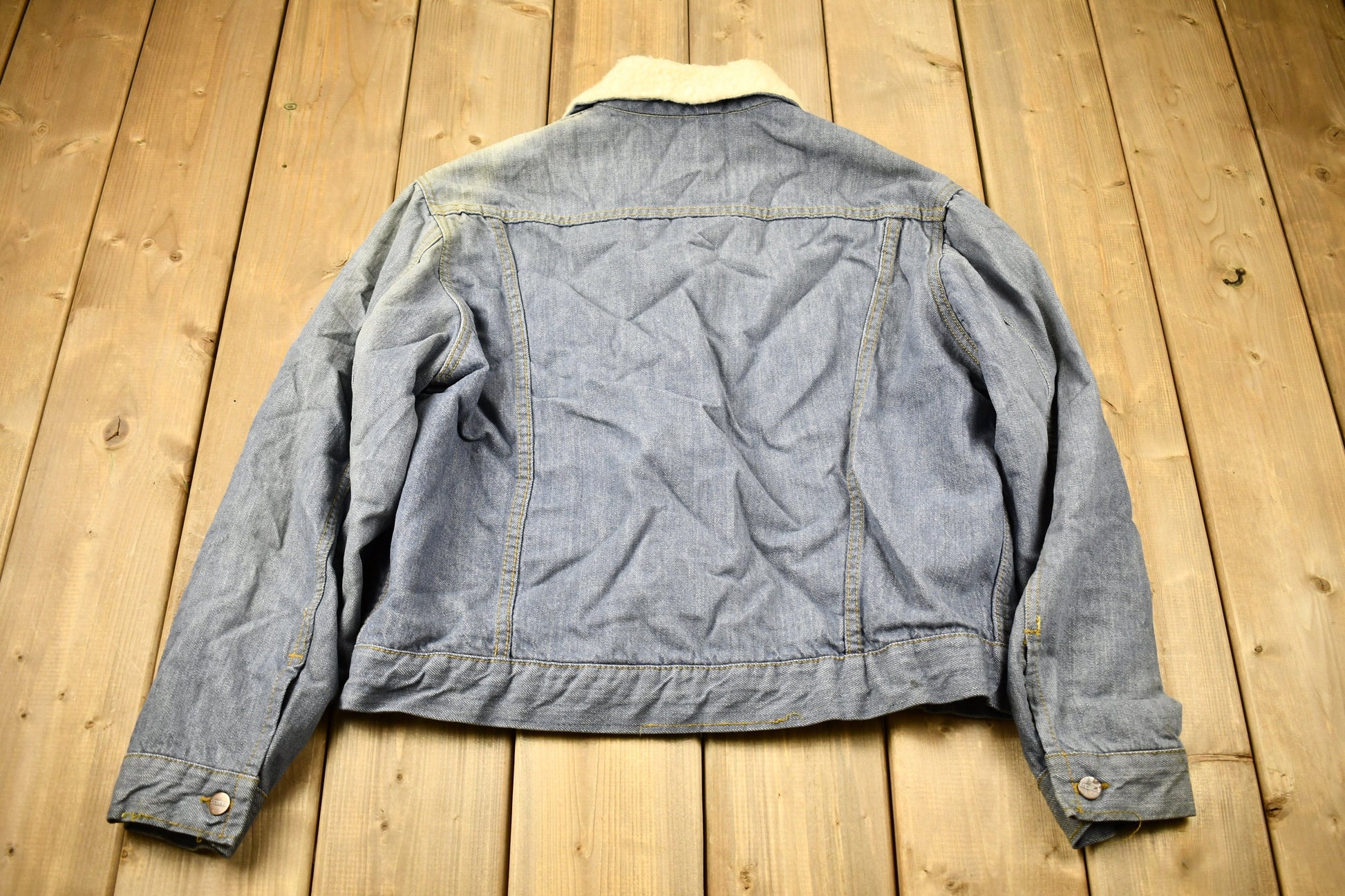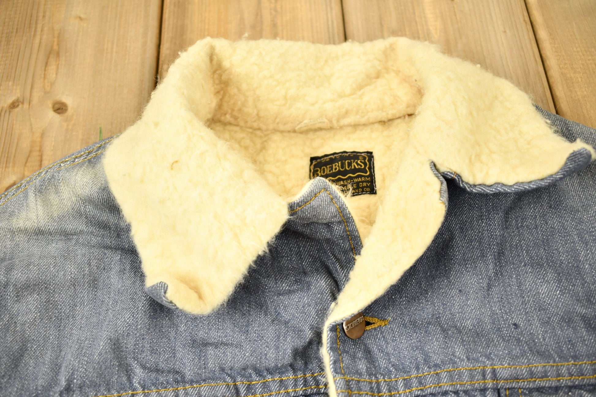Vintage 1970s Genuine Roebucks Shearling Collar Jean Jacket