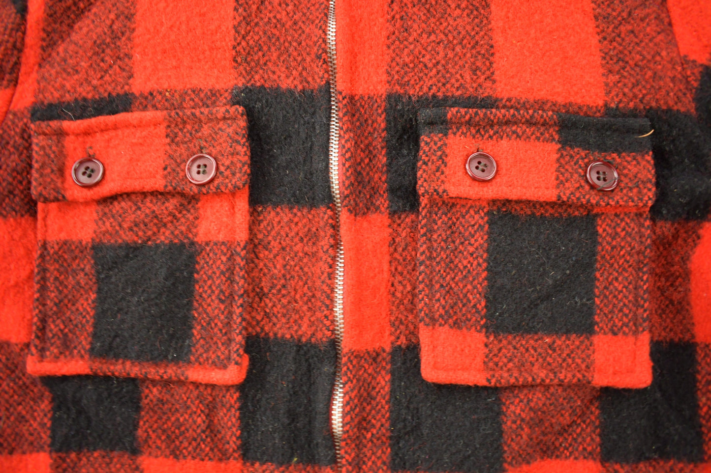 Vintage 1970s Storm Hero Wool Buffalo Plaid Zip Up Jacket