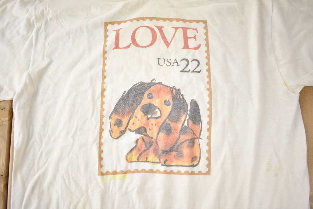 Vintage 1980s Dog Theme Mail Stamp Single Stitch Graphic T-Shirt Made In USA