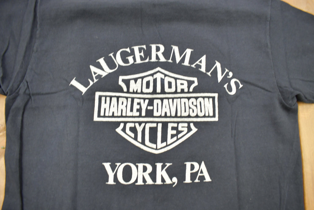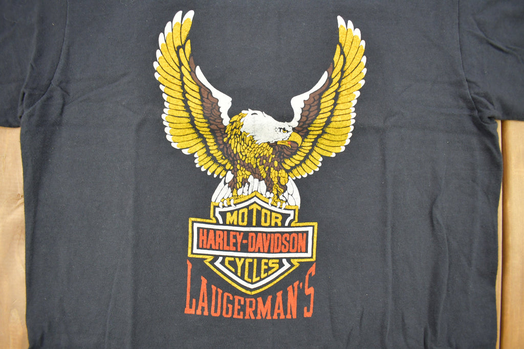 Vintage 1980s Laugerman's Harley Davidson York PA Bald Eagle Graphic T-Shirt