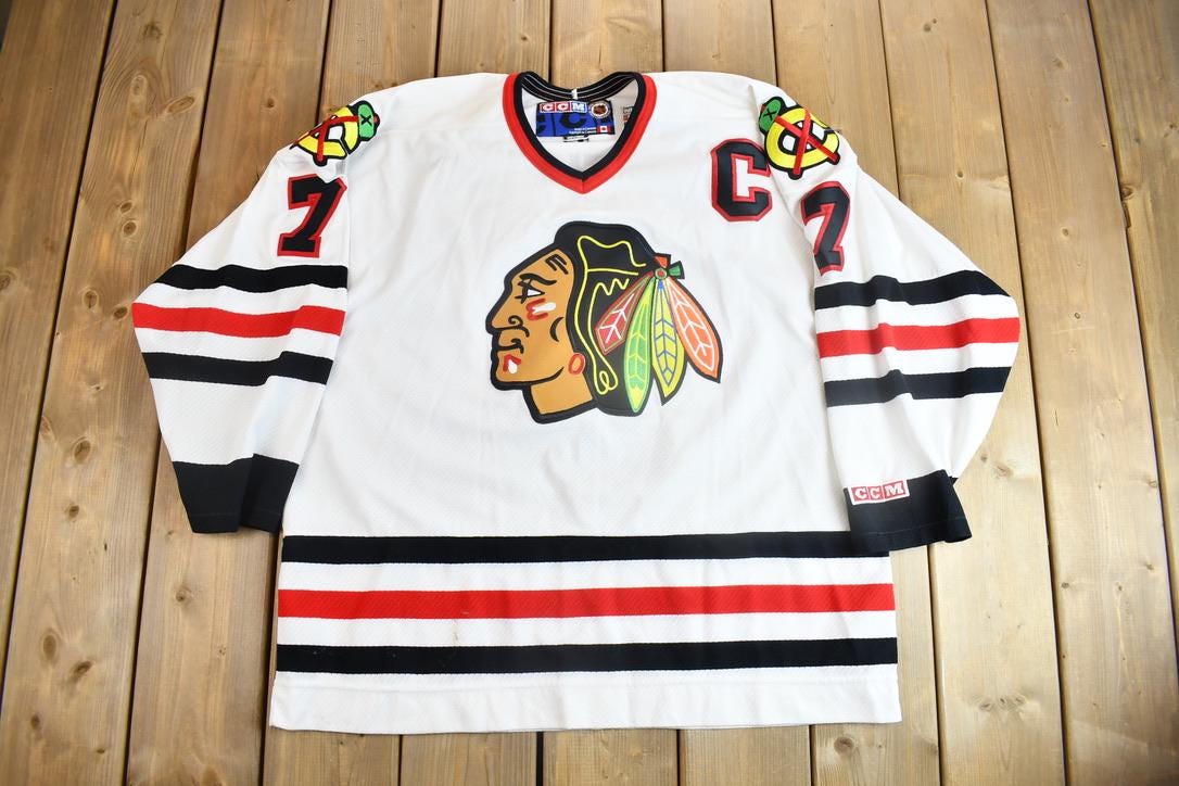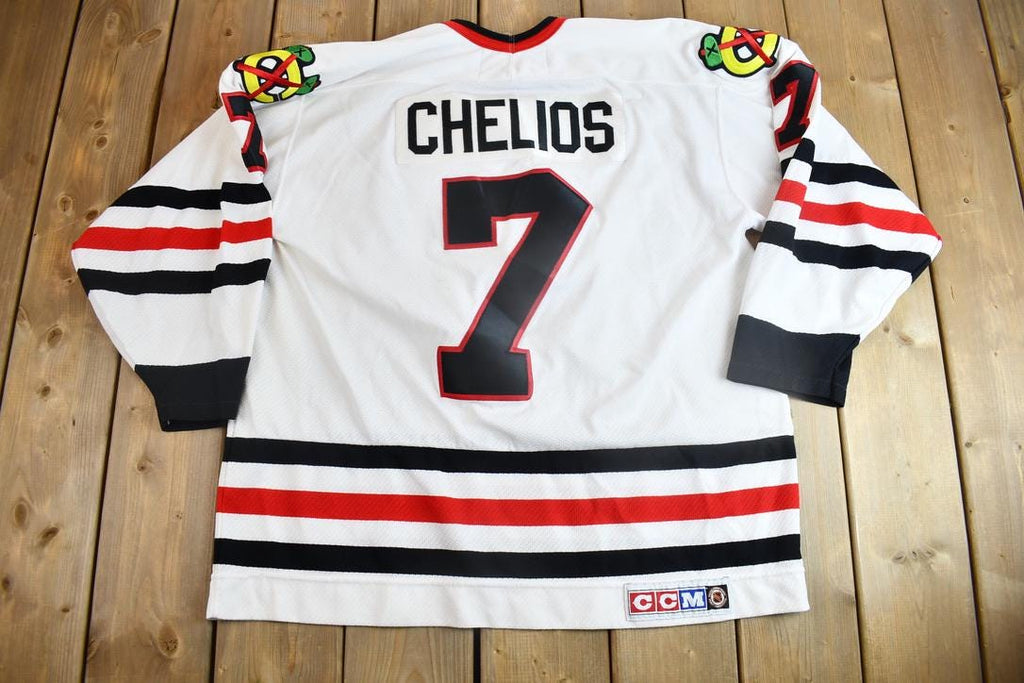 Vintage 1990s Chris Chelios #7 Chicago Blackhawks NHL CCM Hockey Jersey